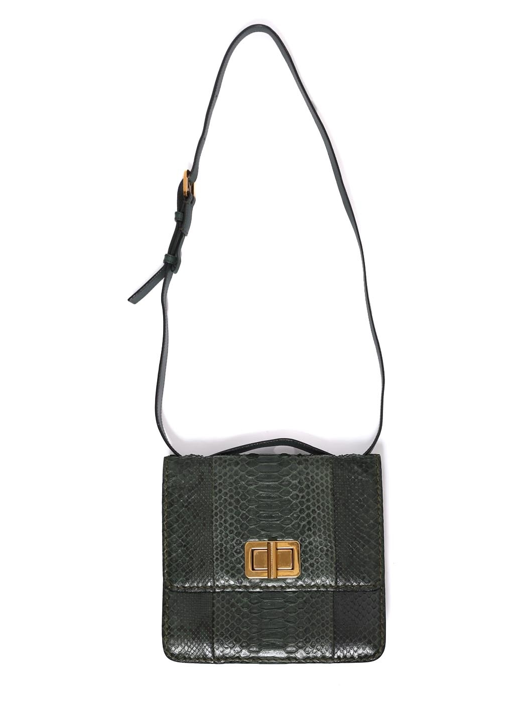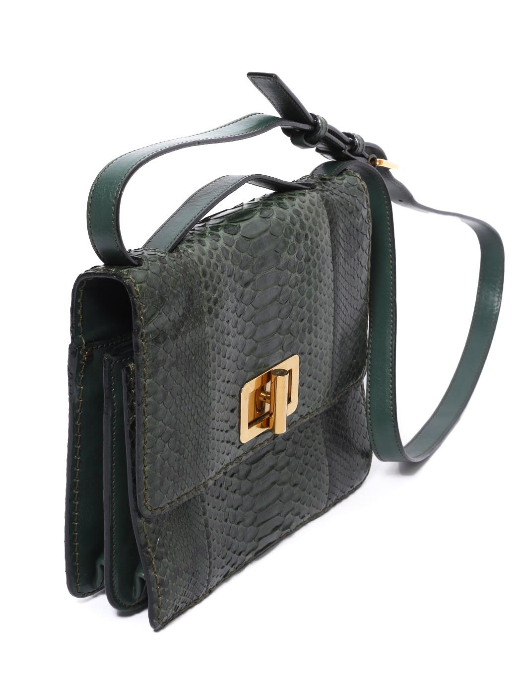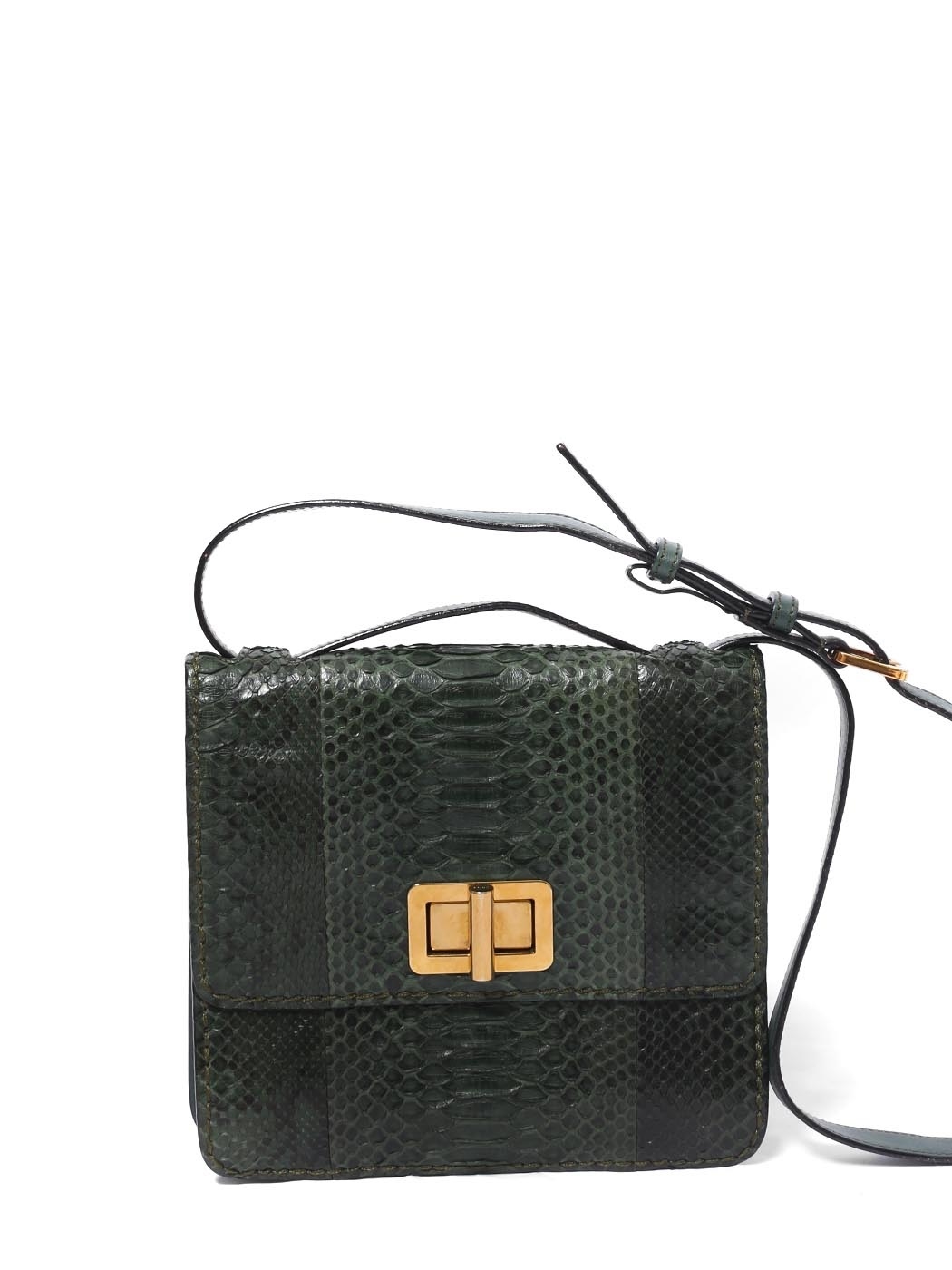 The elegant and sophisticated Louise bag is a timeless accessory. Expertly crafted in Italy in a luxury Italian python leather, this piece will last several generations of chic ladies. The intense english green color contrasts beautifully with the warm gold brass metallic parts. Thanks to the adjustable strap, you can wear it on the shoulder or in cross body. Style it easily with all your wardrobe, this very practical bag will add the most refined touch to your silhouette.