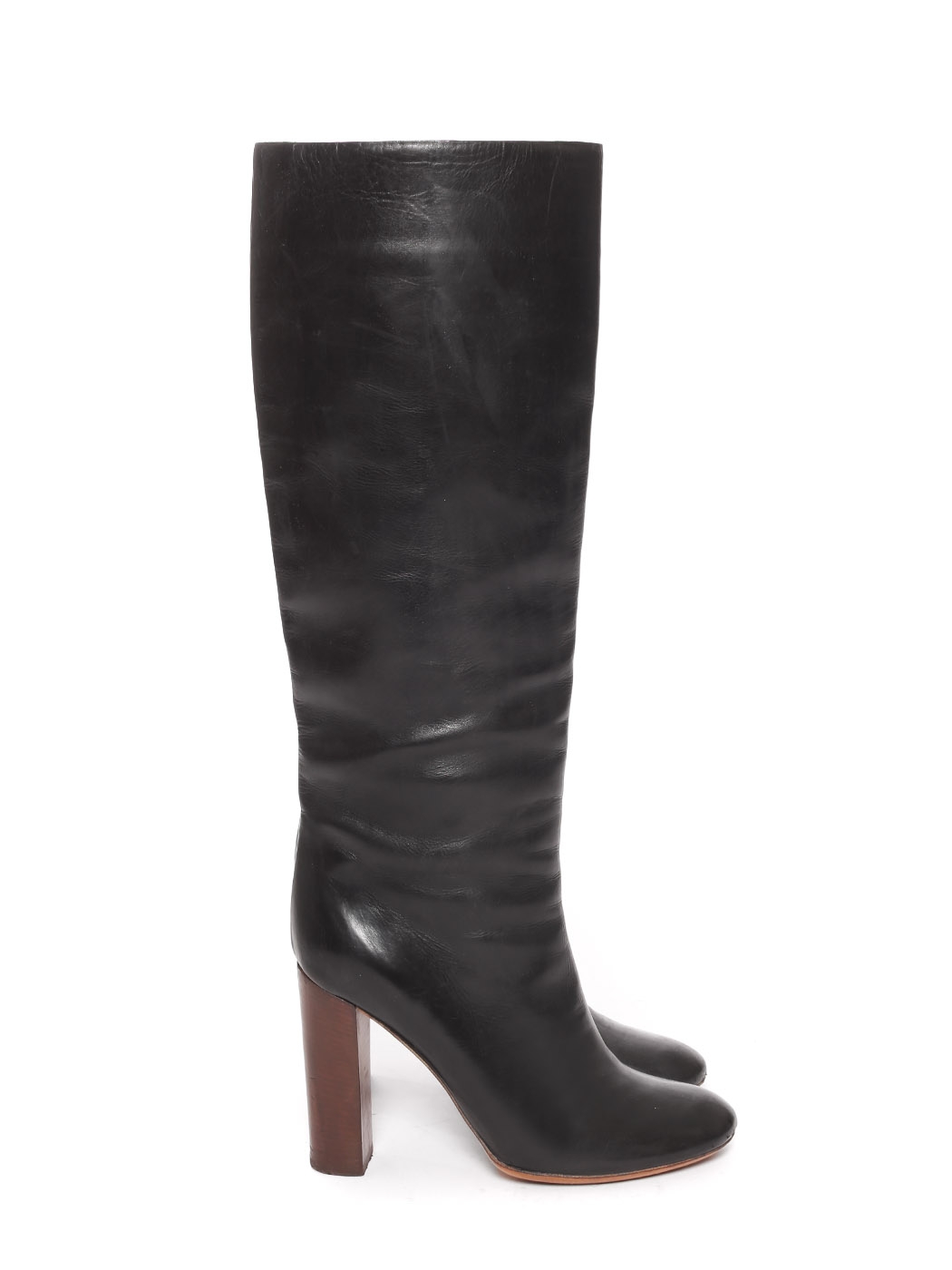 Black leather boots with wooden high heel Retail price €1000 Size 39