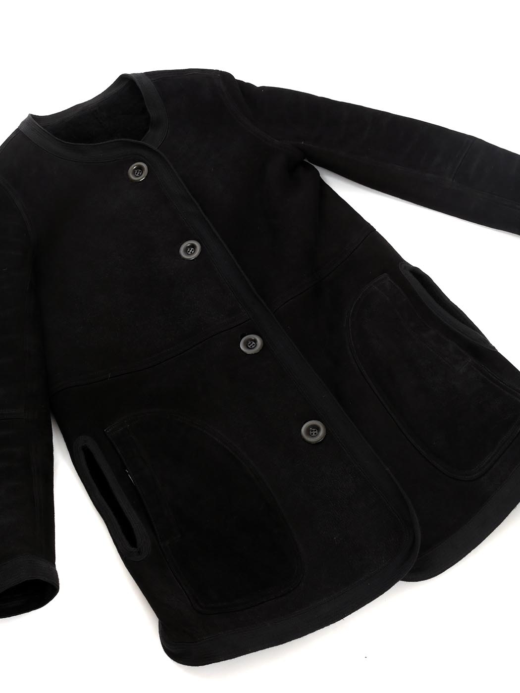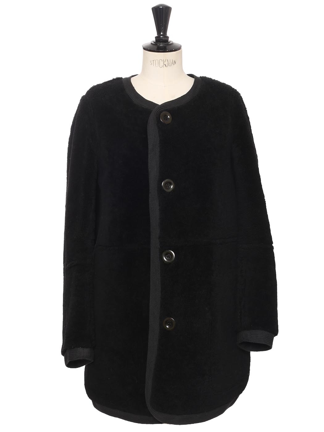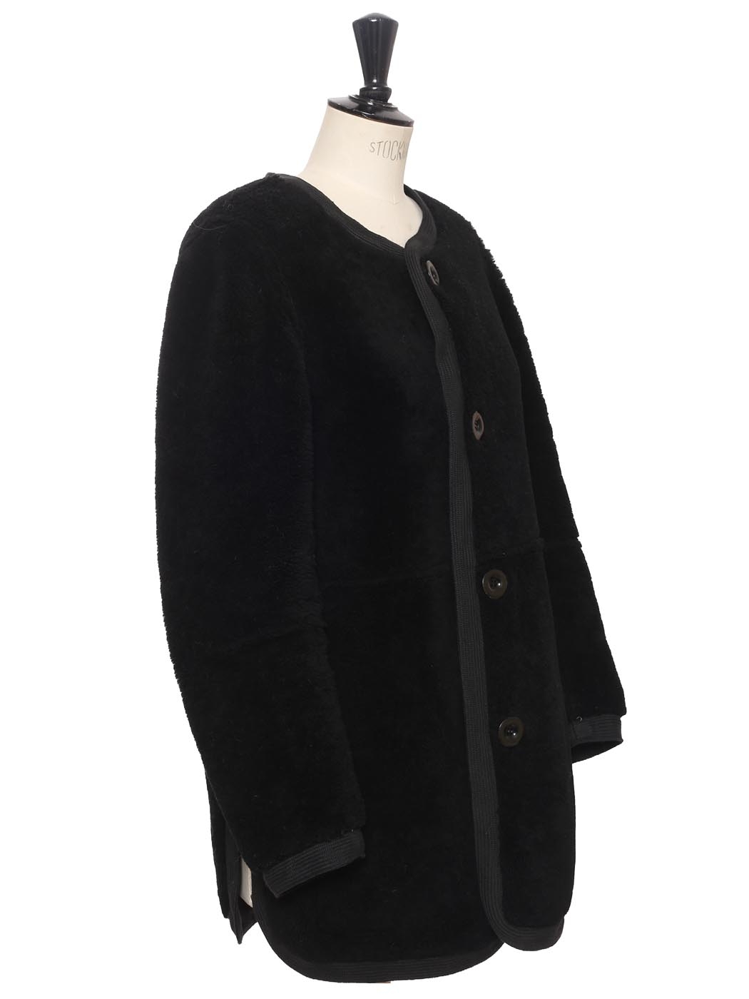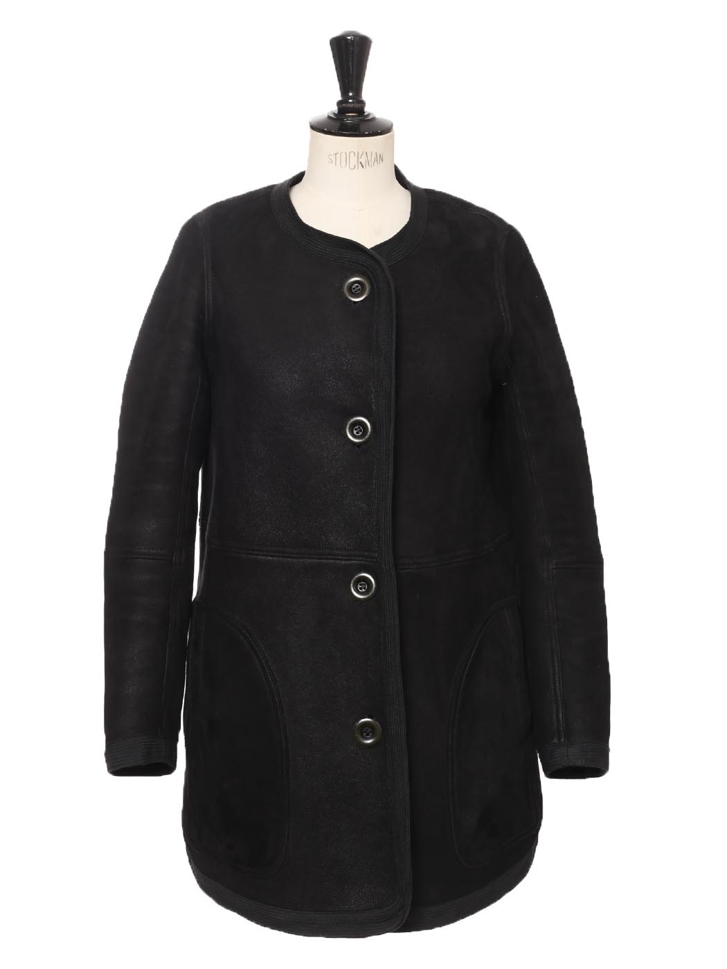 Black suede and shearling reversible round neck coat Retail price €3000 Size XS/S