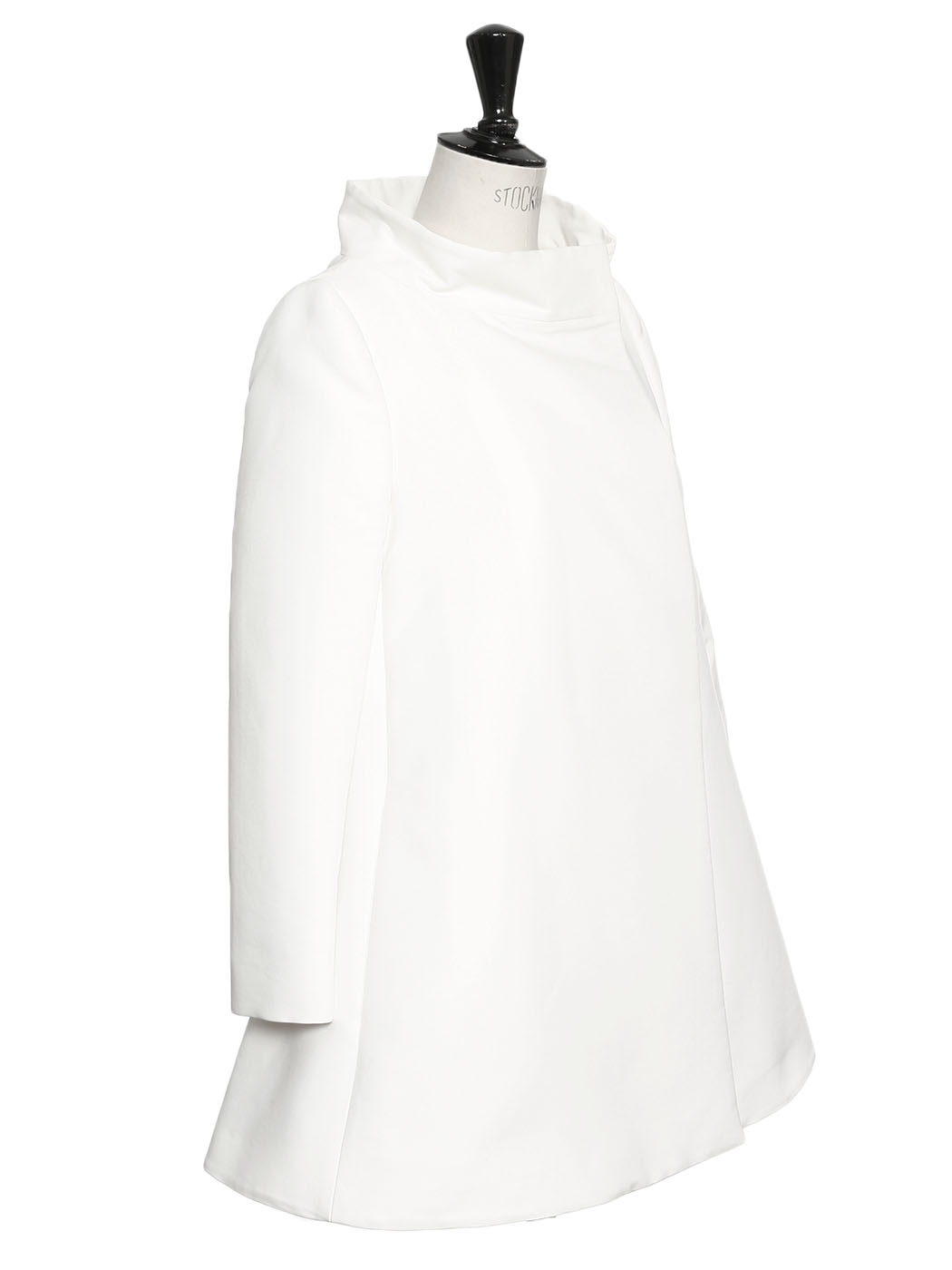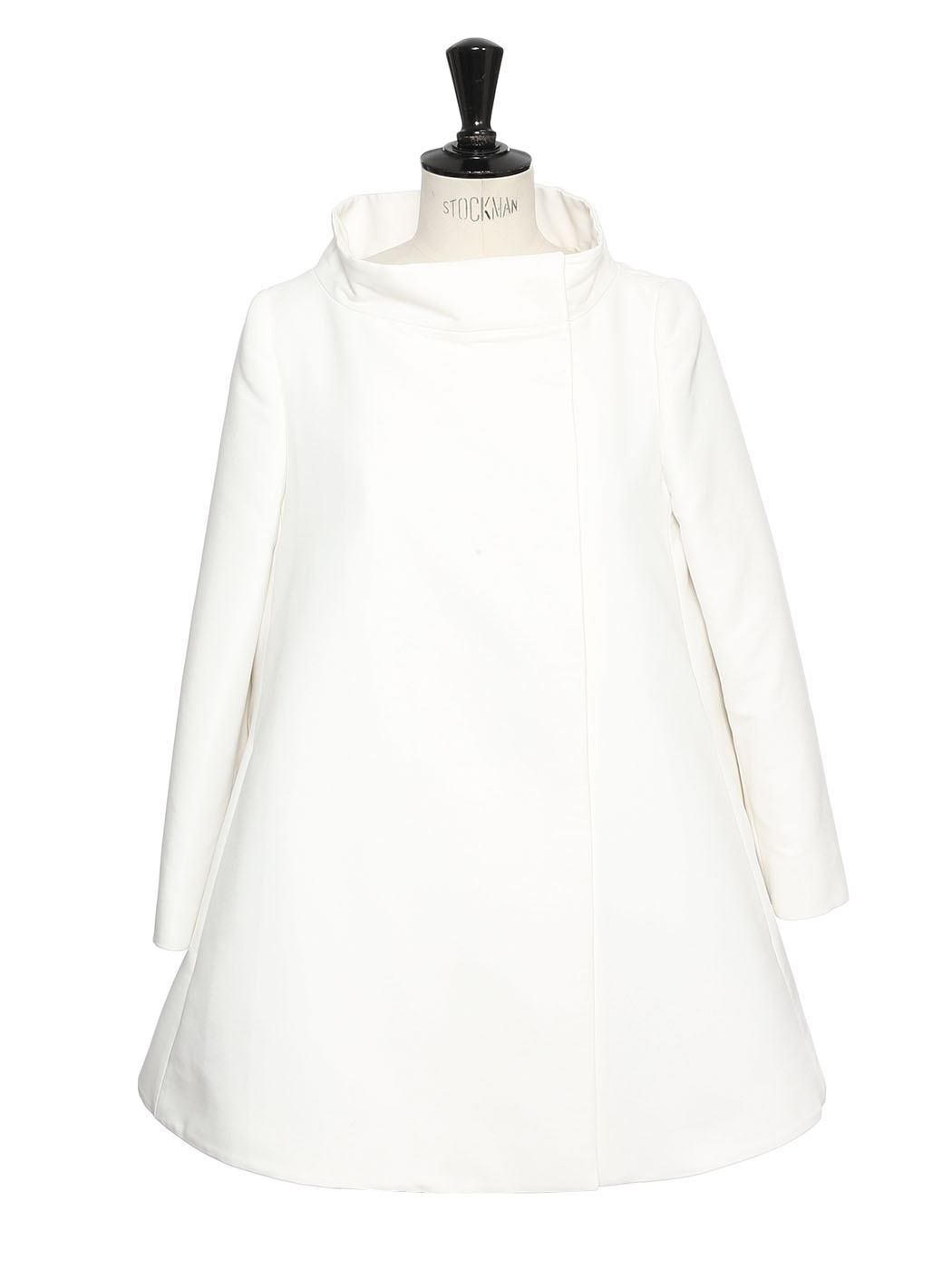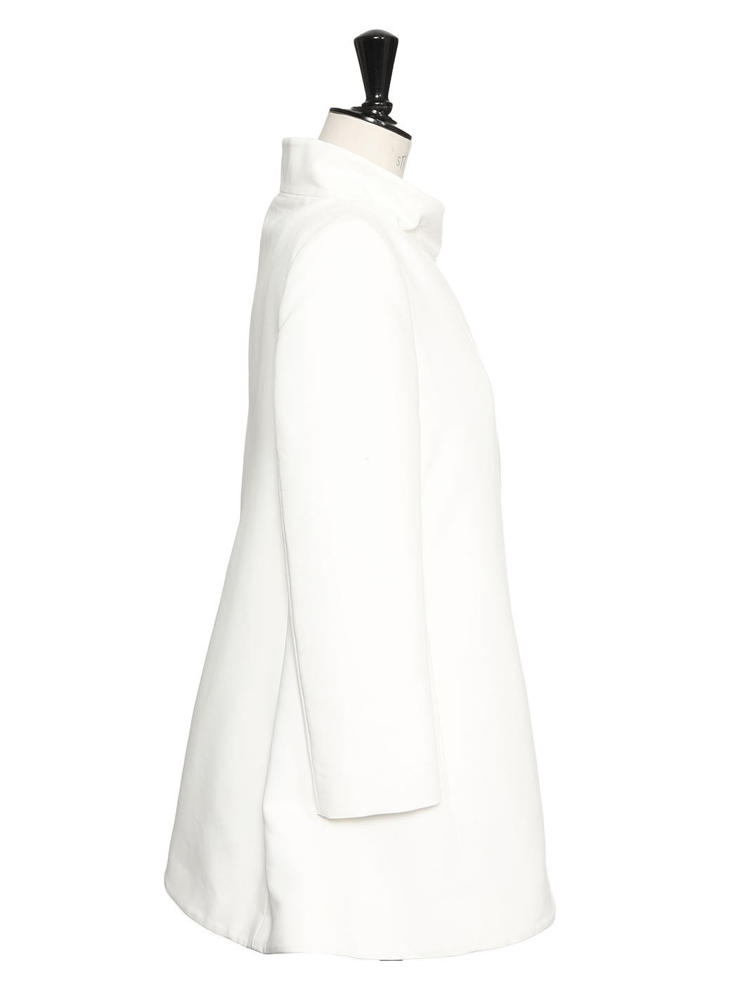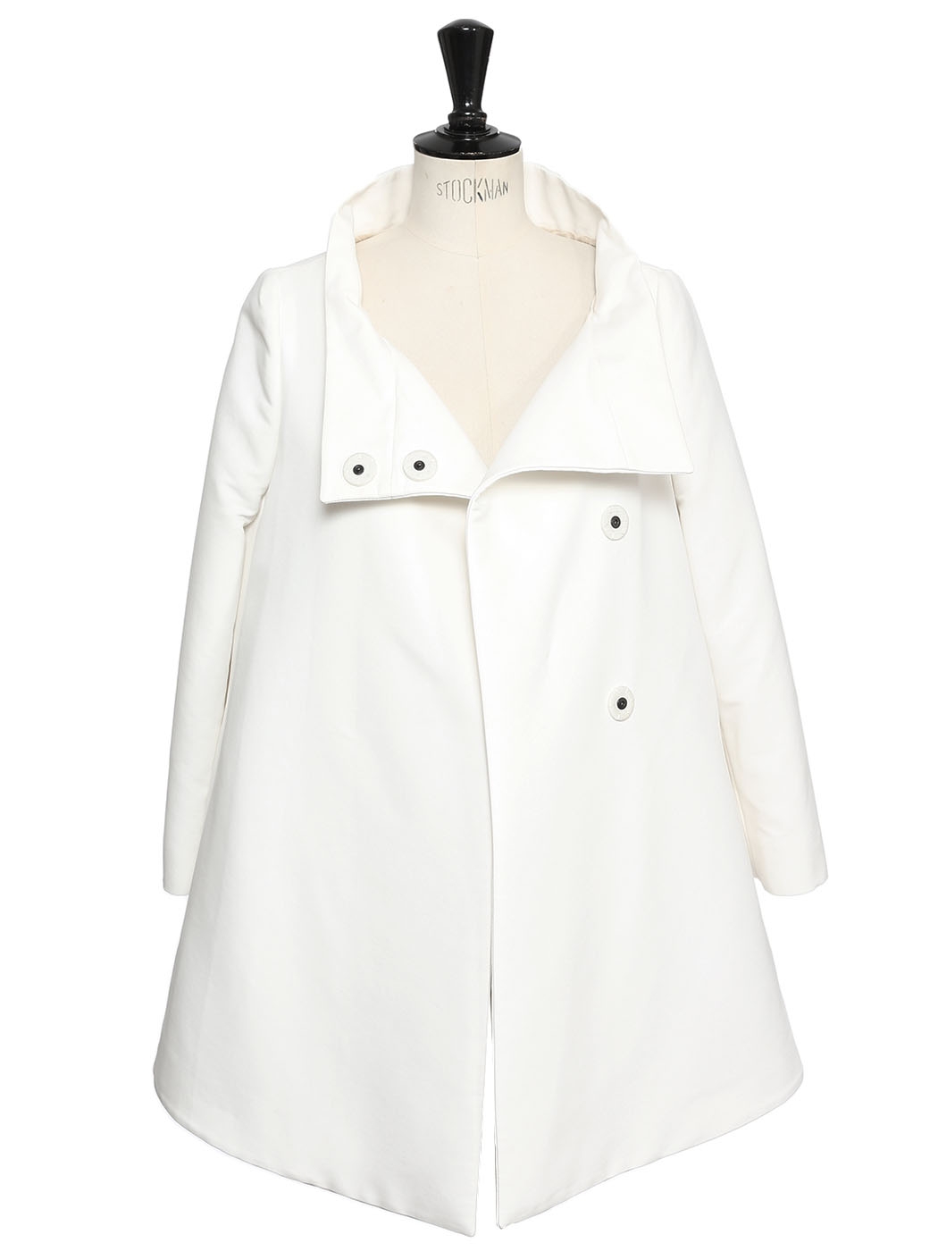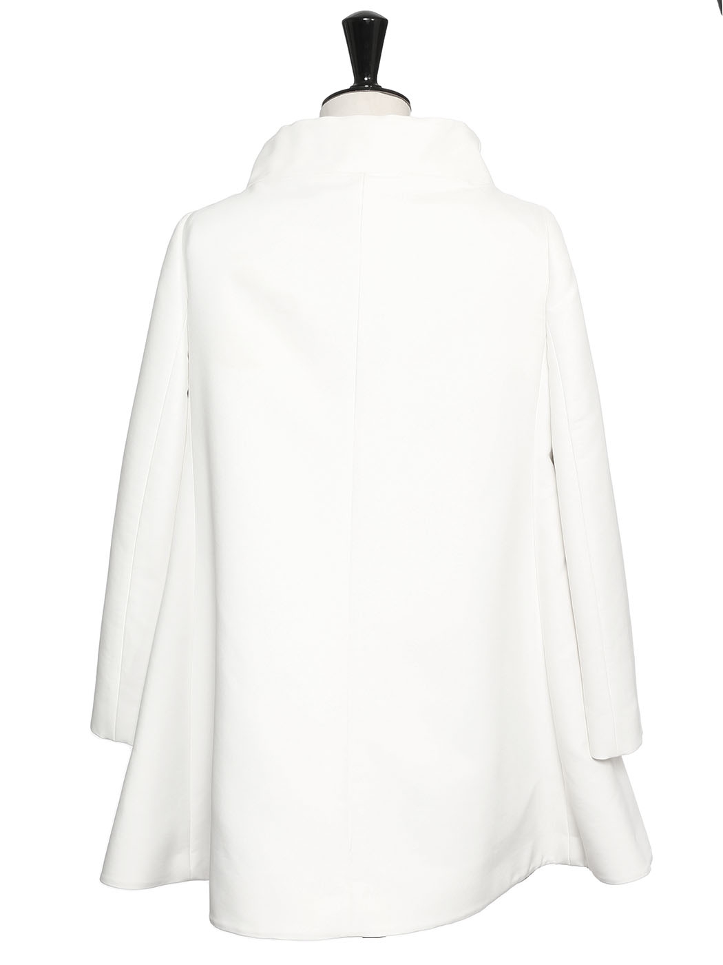 White silk sixties style long sleeves spring coat Retail price €1800 Size 36