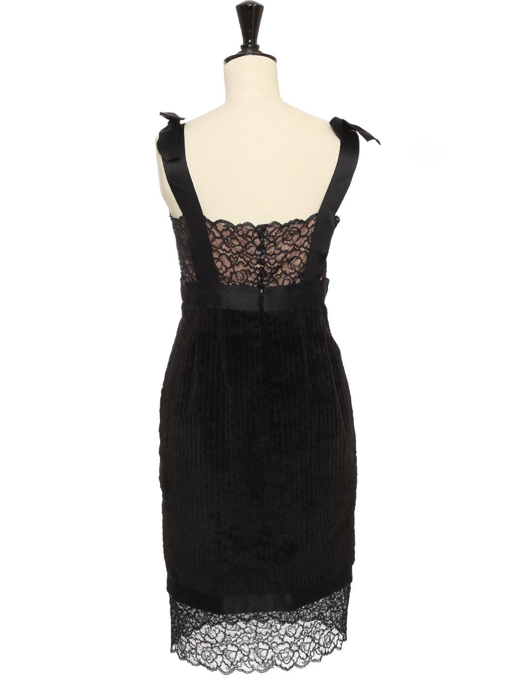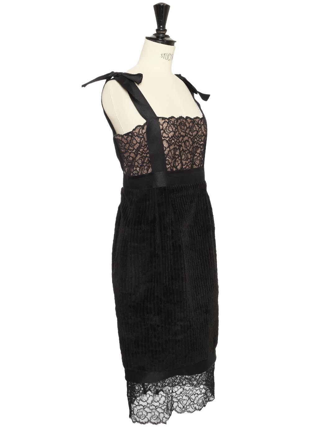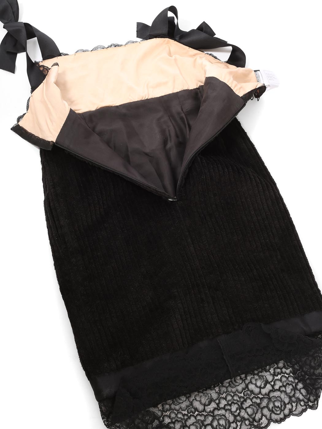 Black corduroy, fine lace and satin bow straps dress Retail price €6500 Size XS