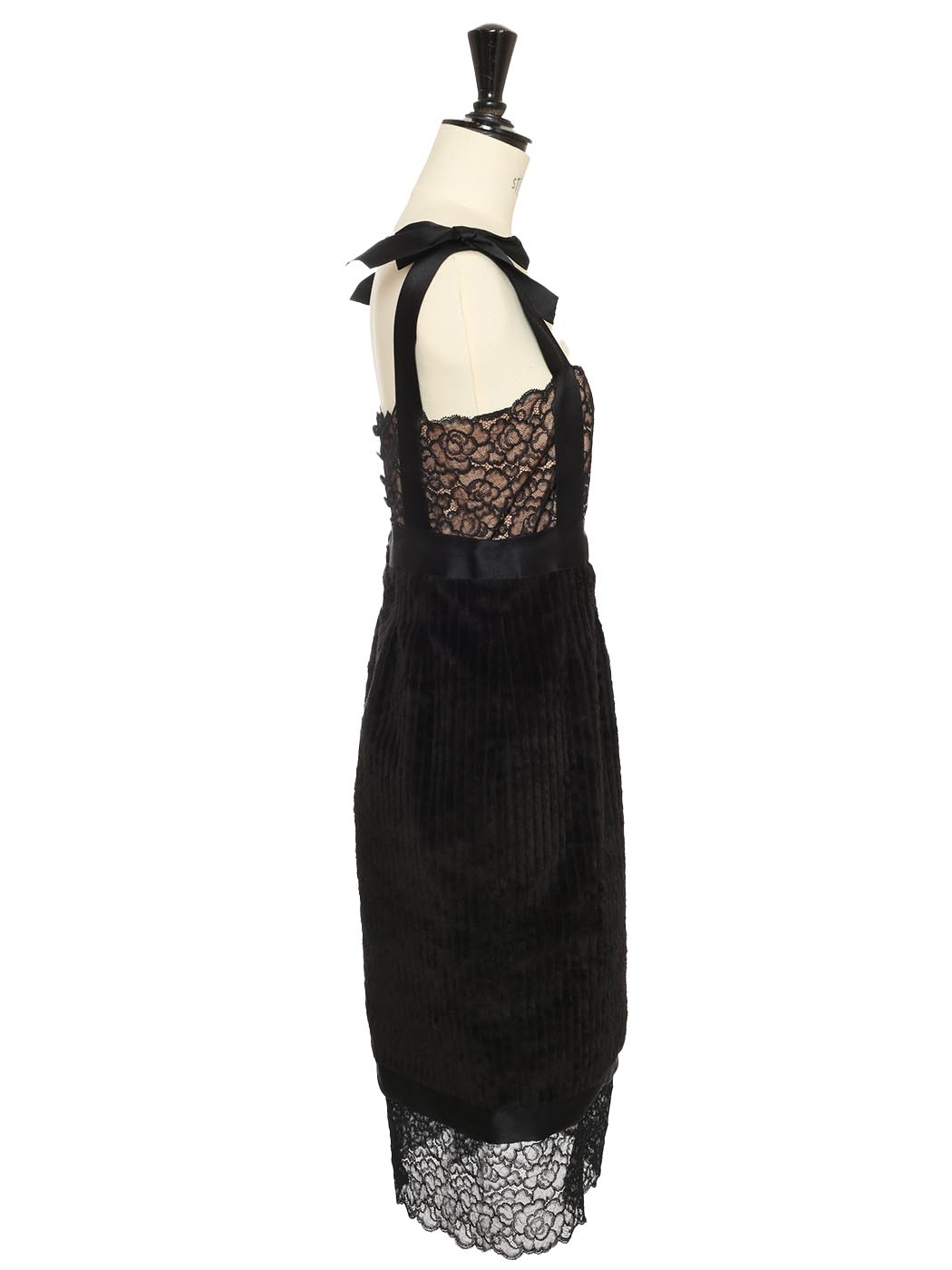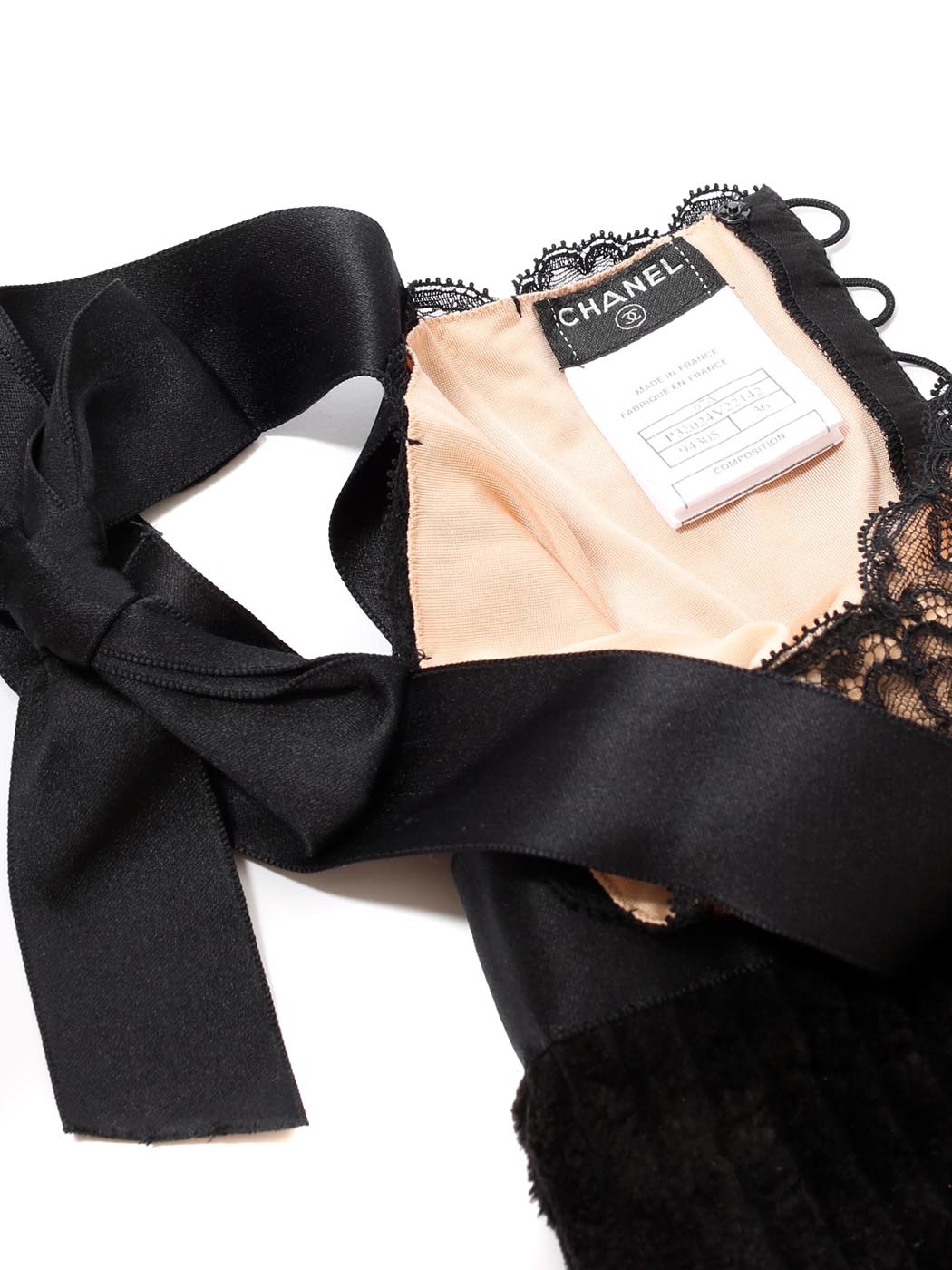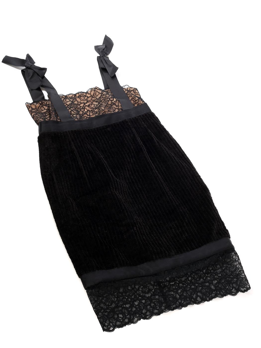 Black corduroy, fine lace and satin bow straps dress Retail price €6500 Size XS