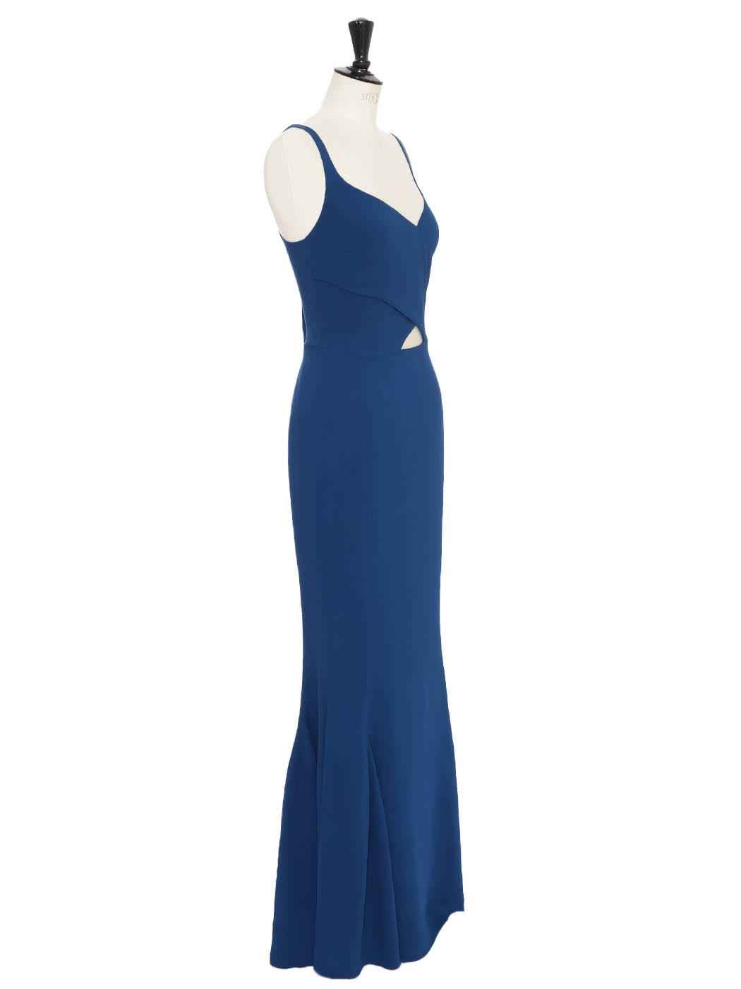Long evening dress with sweetheart neckline in ocean blue crepe Retail price €1,500 Size 38