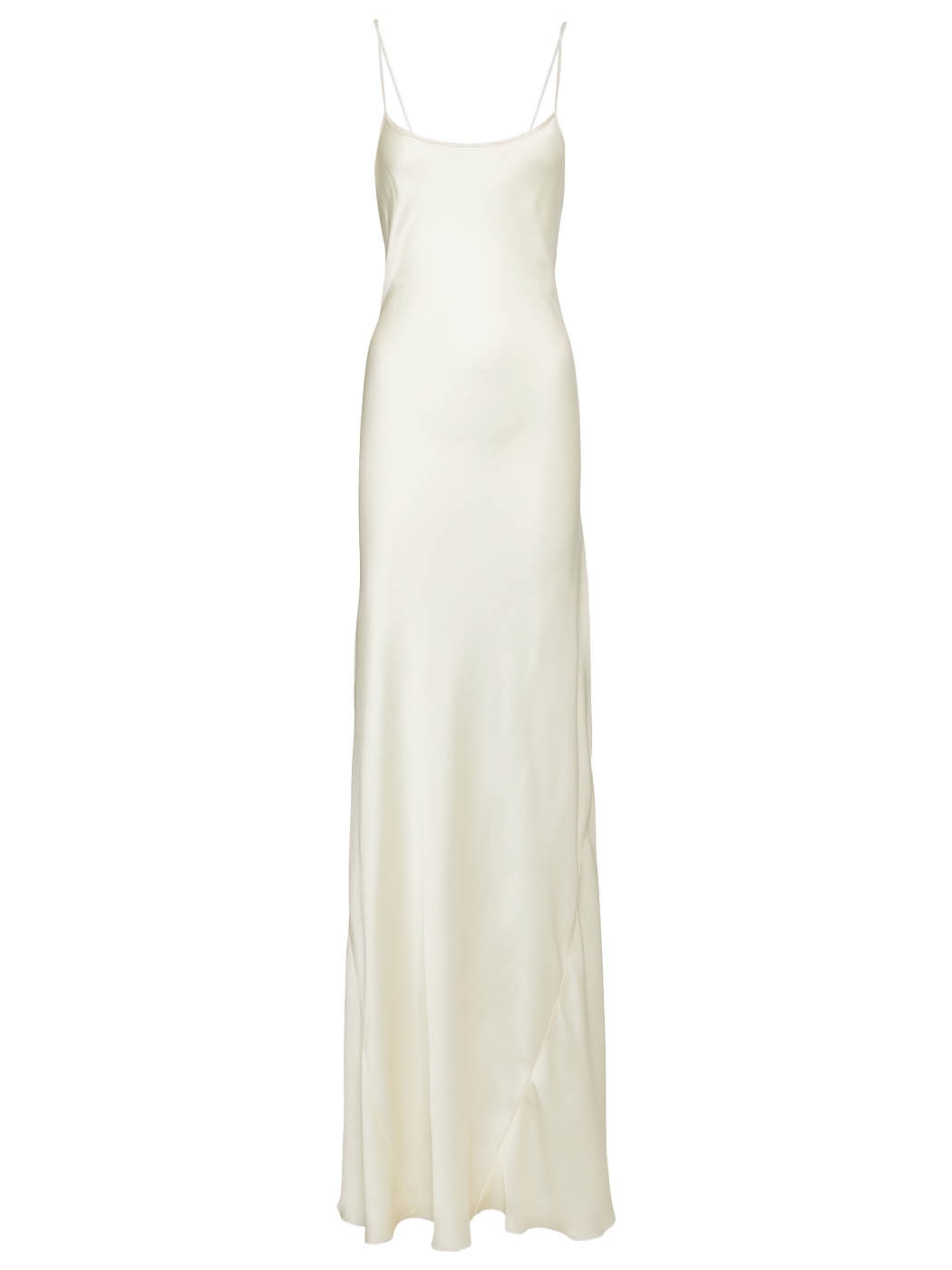 This minimalist 90s-inspired dress is cut to perfection in bright fluid satin. The floor length lengthens your silhouette, while the deep open back exudes sensuality and glamour. Perfect for your wedding or a black tie evening, this exceptional dress is sure to turn heads.