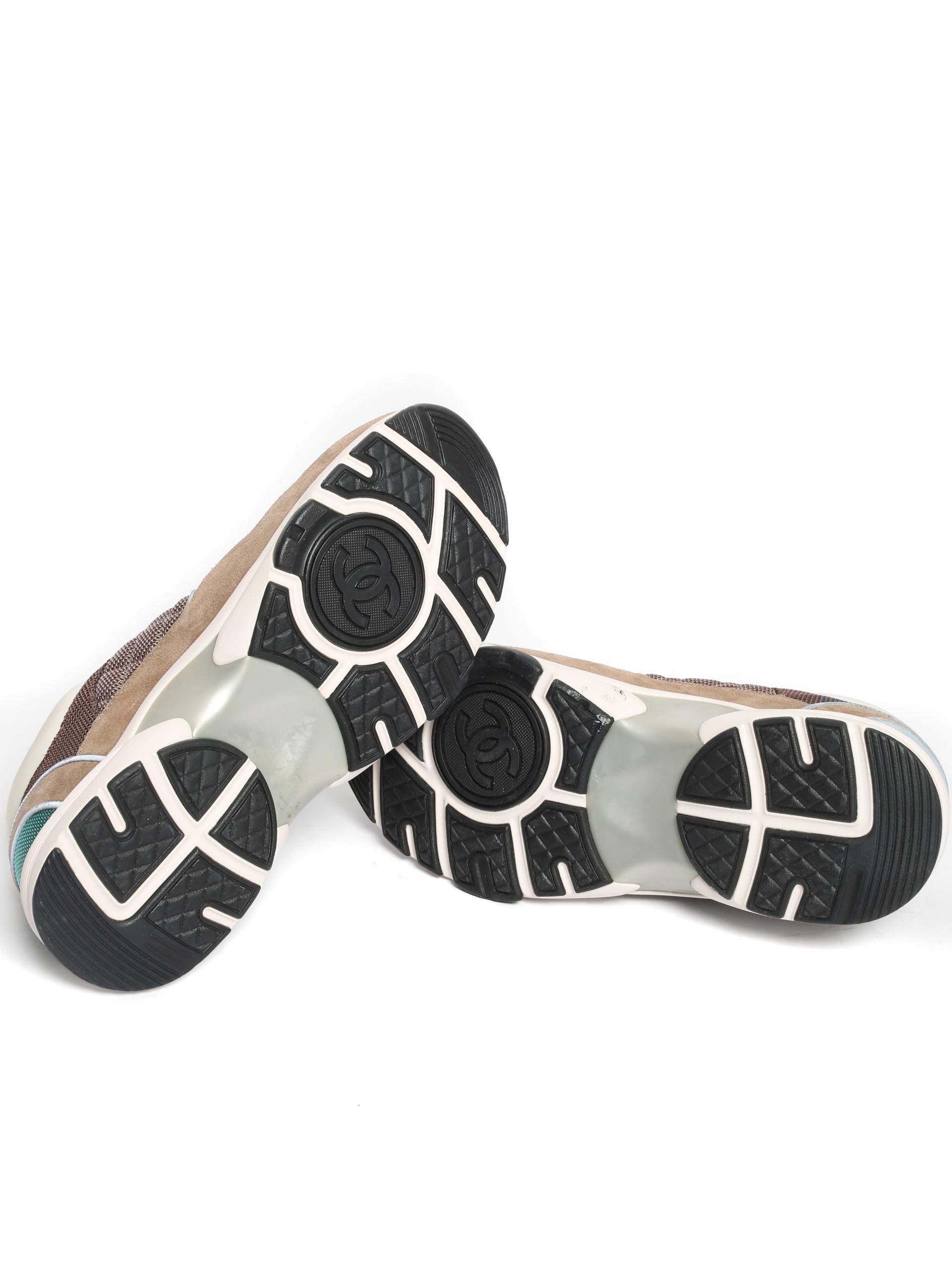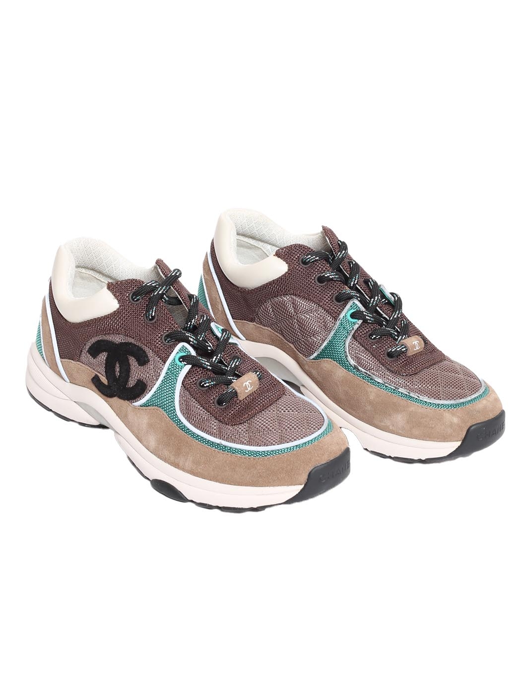 Stunning brown and turquoise sneakers from French fashion house CHANEL.