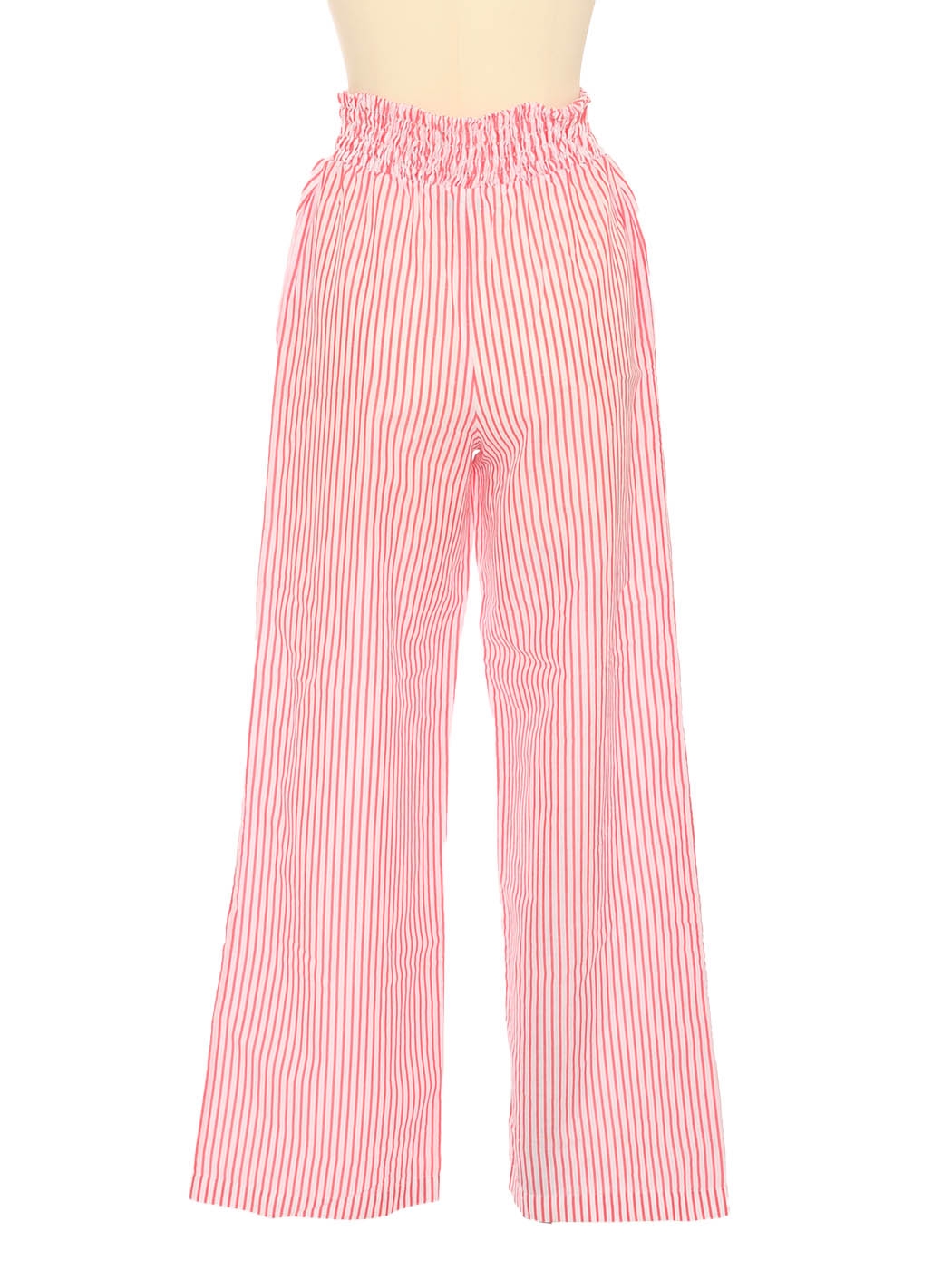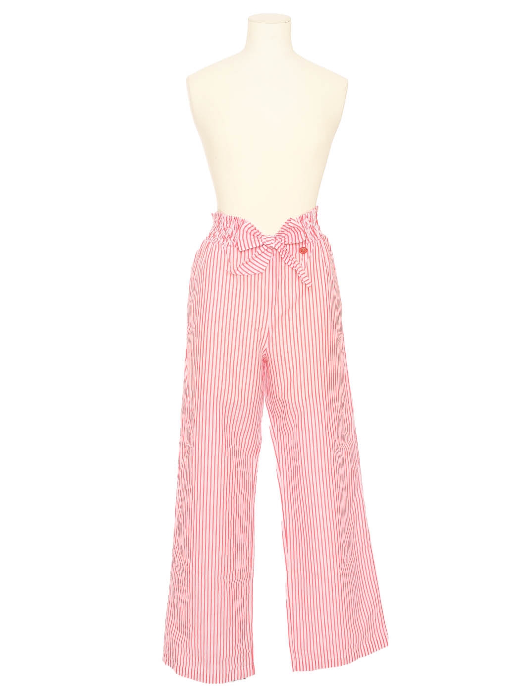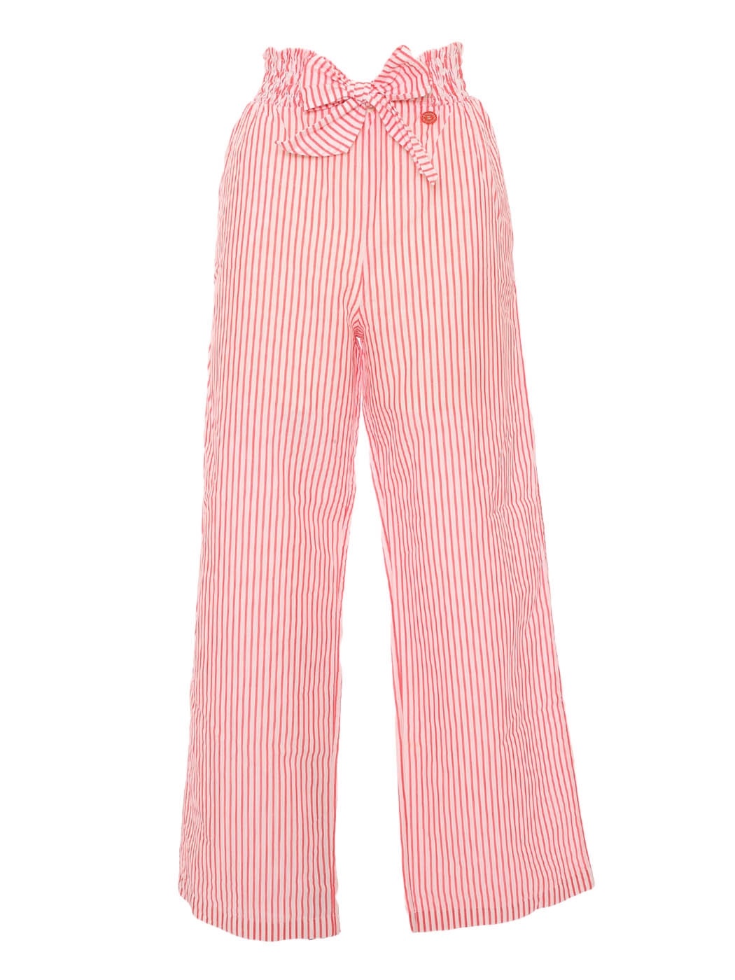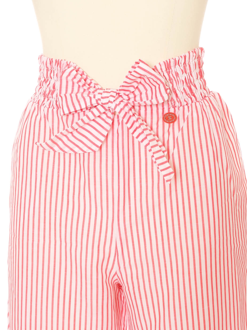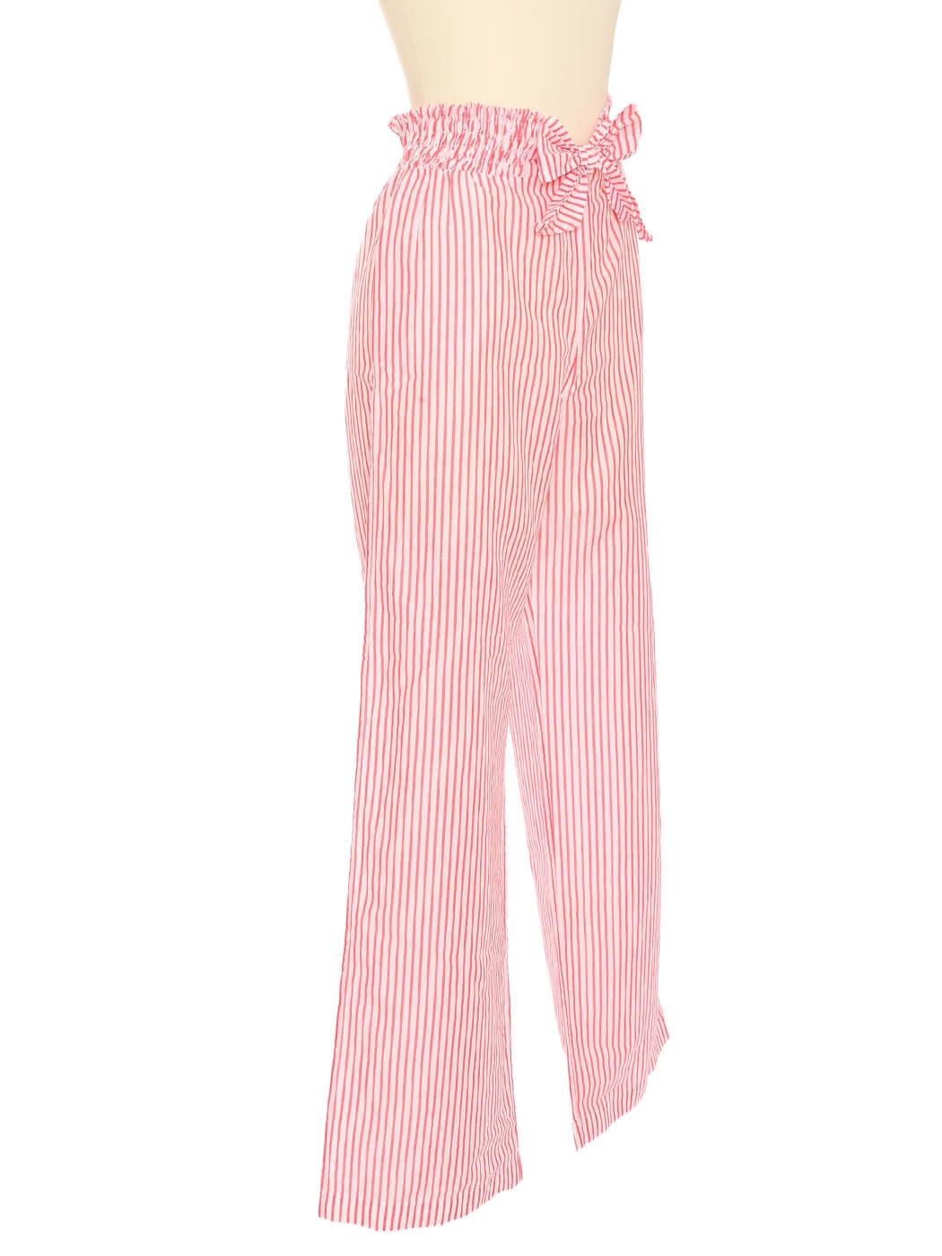 White and red striped cotton high waist belted trousers Retail price €950 Size XS
