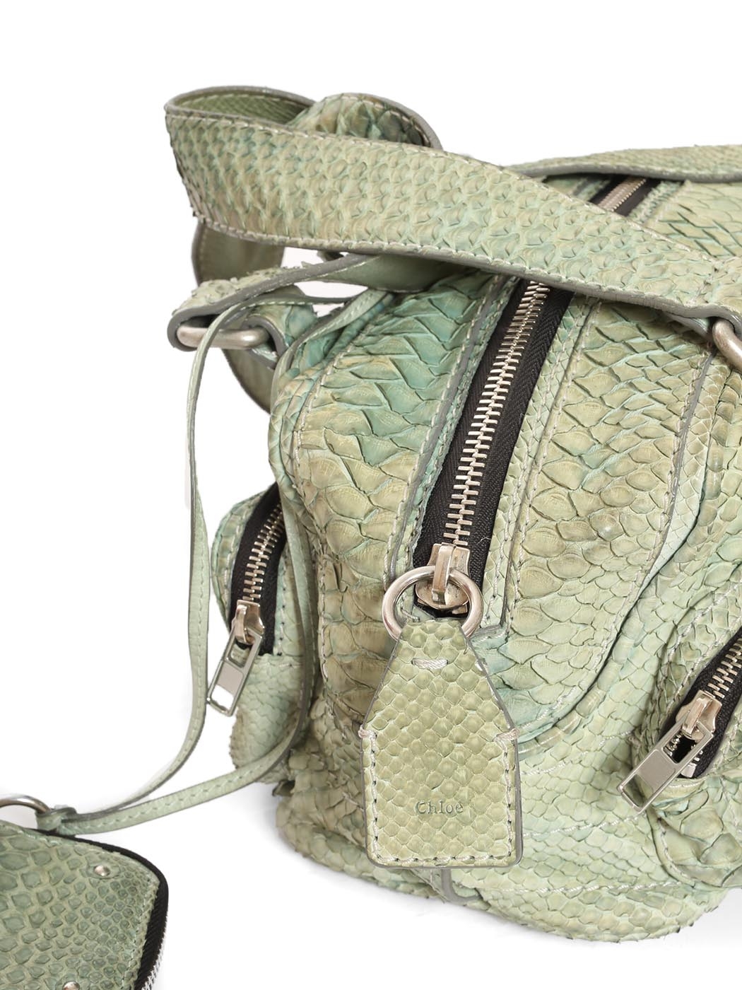 This Betty Mini bag in green python is made in Italy and from the Spring/Summer 2017 collection designed by Phoebe Philo. This sophisticated accessory features a compact design and precious skin, offering a unique touch of luxury. The intense green and python texture give it a unique character, while the refined details and hourglass-shaped fastening underline its timeless style.