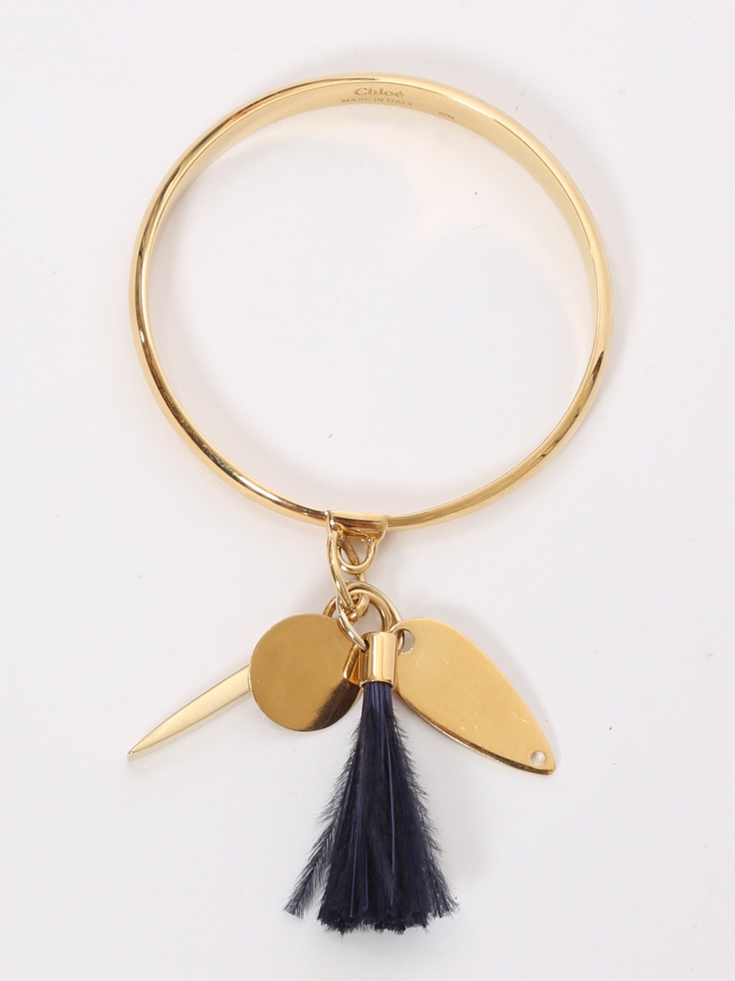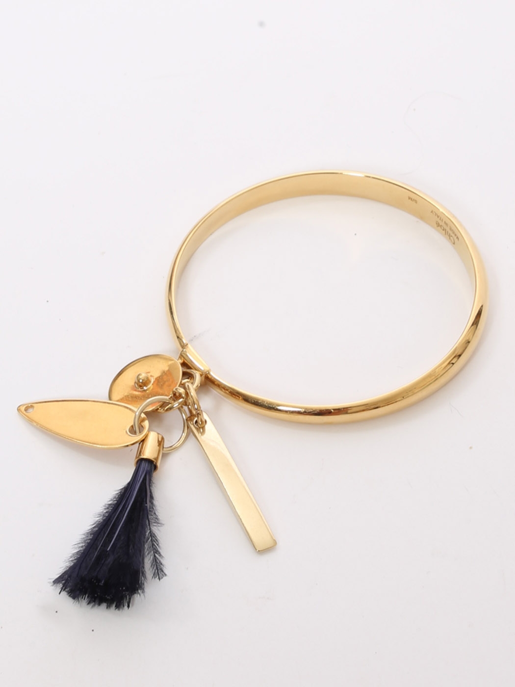 Gold-plated brass bracelet with blue feather pompoms Retail price 420€