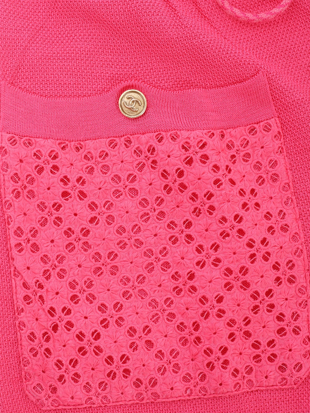 Bright pink high-waisted flared trousers with broderie anglaise pockets Retail price €3,200 Size 34