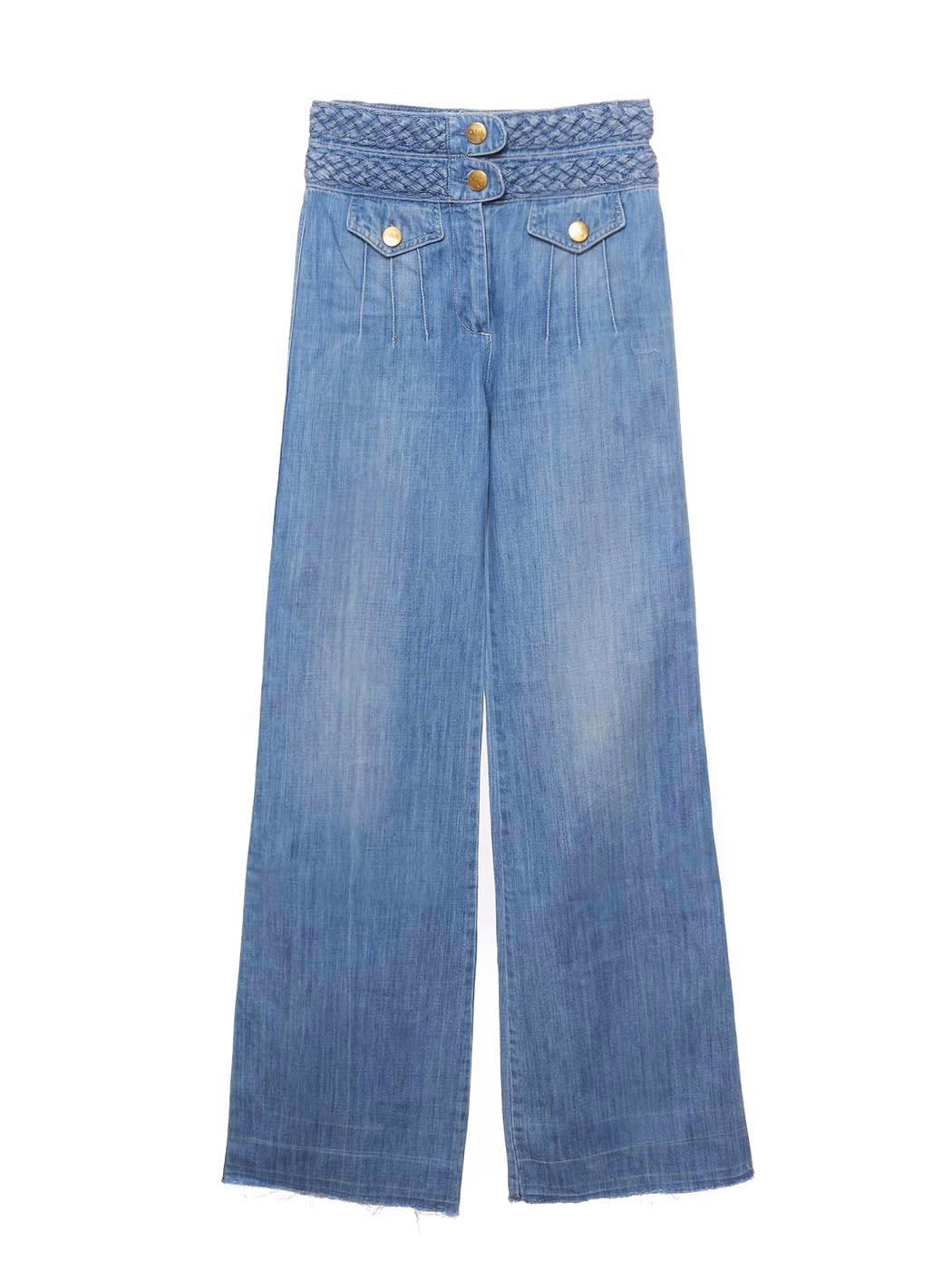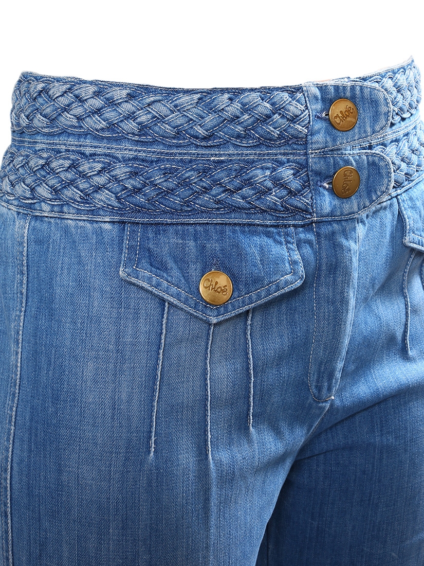 Blue denim braided woven waist high rise flared jeans Retail price €990 Size 38