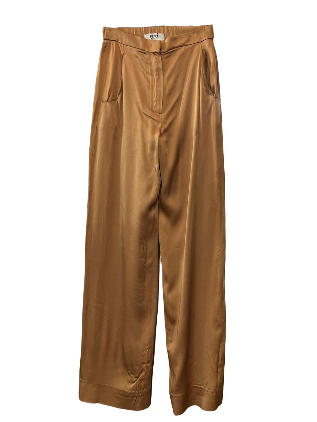 Camel brown satin fluid pants Retail price 1200€ Size 38