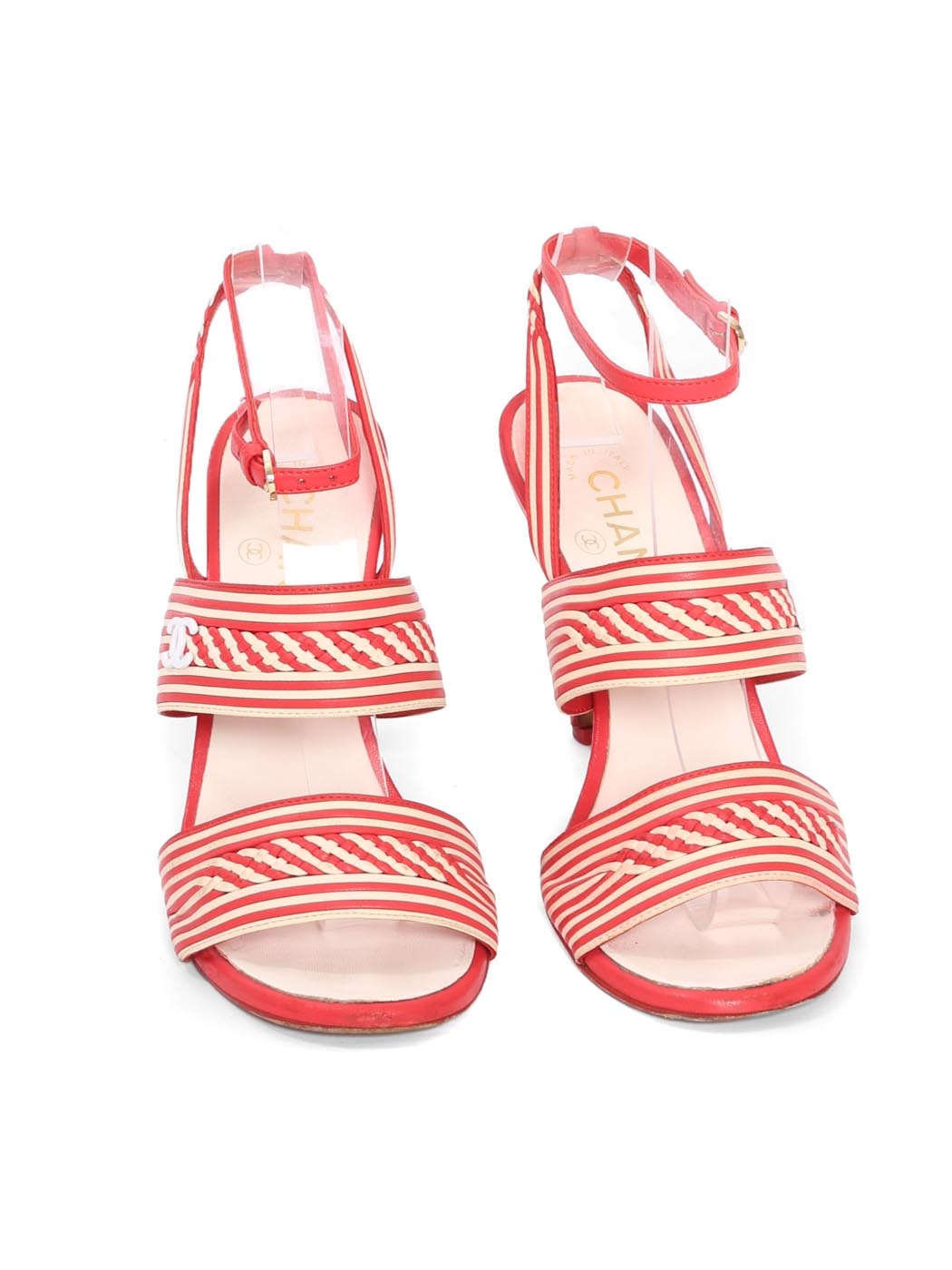 Red and white striped leather heel sandals Cruise 2020/2021 Retail price €950 Size 38