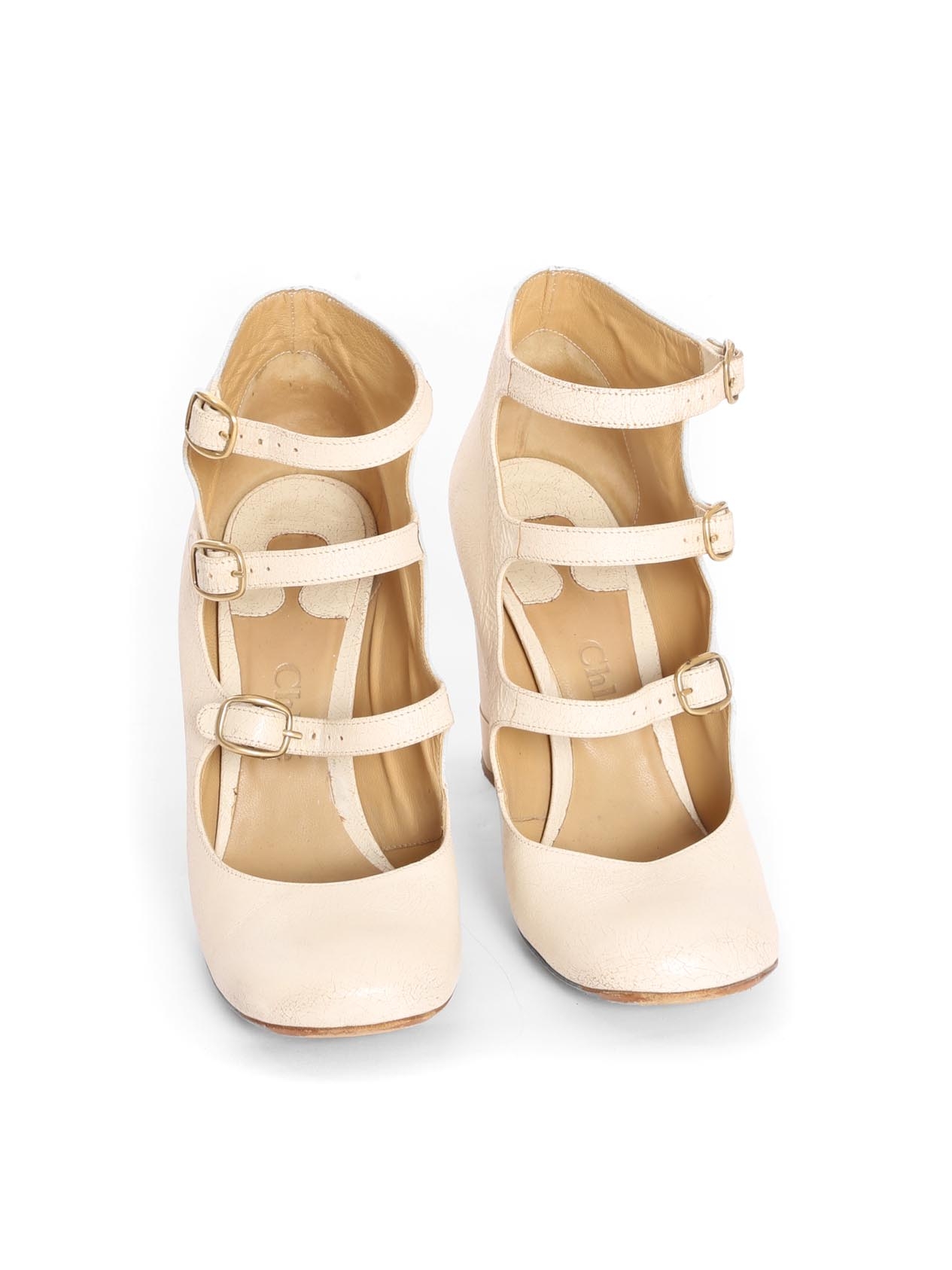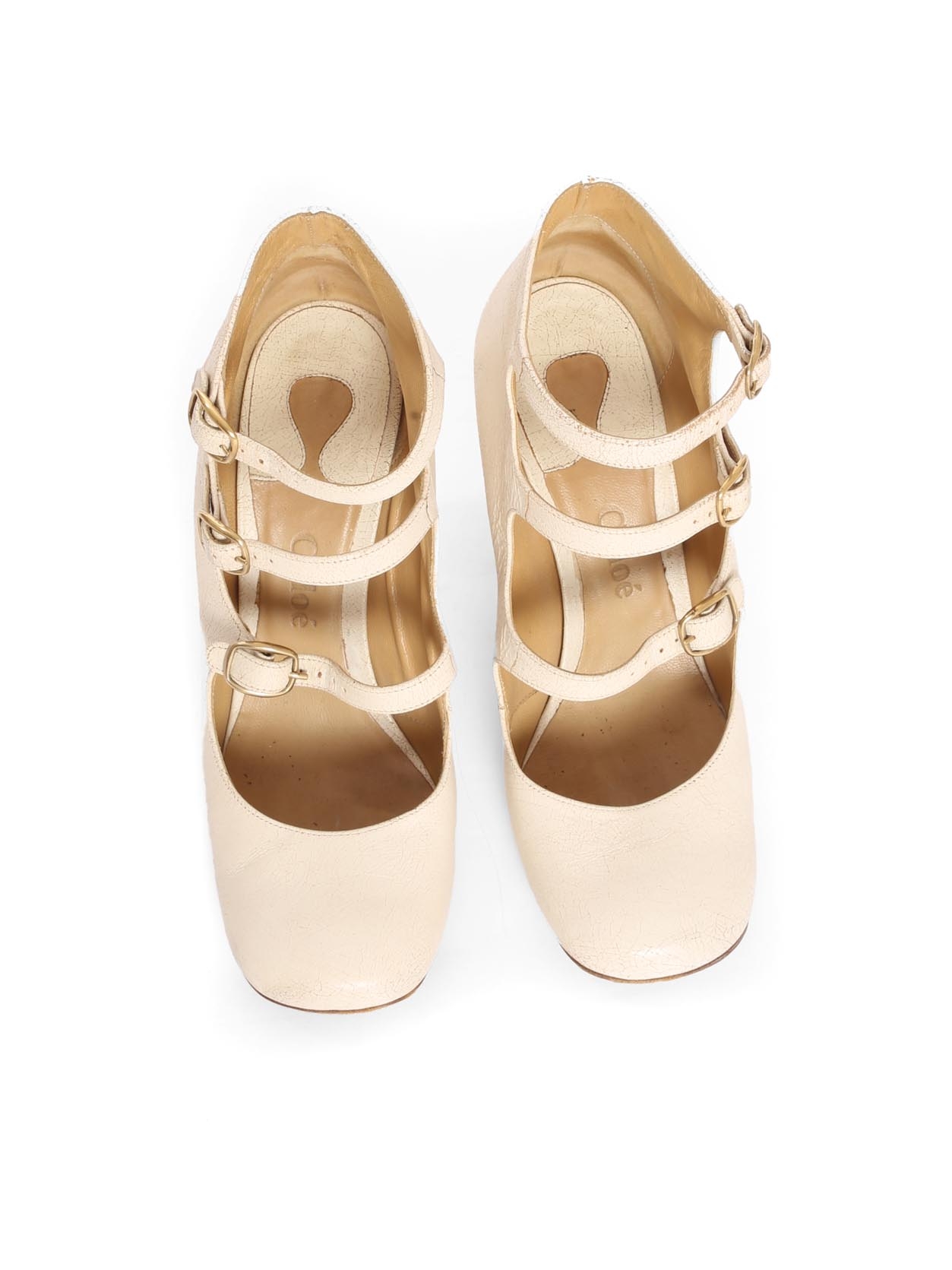 Multi-strap with gold buckles ivory white distressed leather pumps Retail price €1090 Size 37
