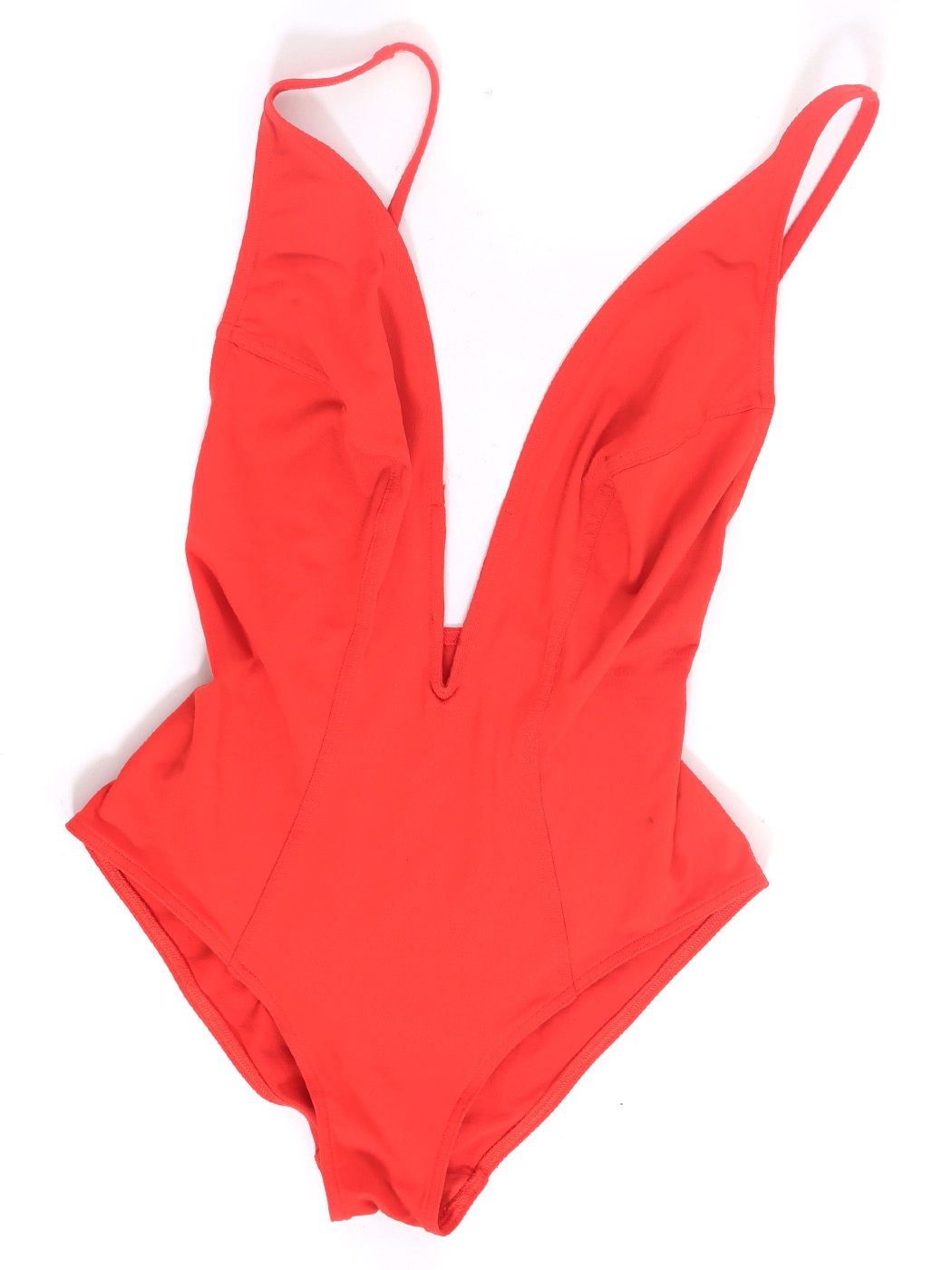 One-piece swimsuit plunging neckline bright red Retail price €595 Size 40