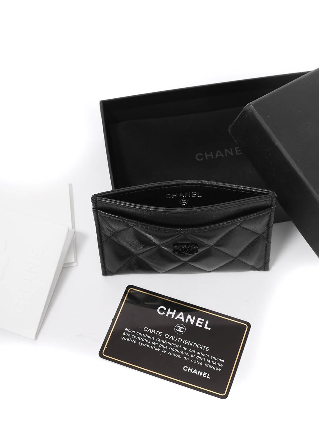 Taillé avec le plus grand soin dans une superbe cuir matelassé noir intense, ce porte-cartes est une pièce d'exception. Intemporel, élégant et raffiné, il est parfait pour accompagner votre sac Chanel.