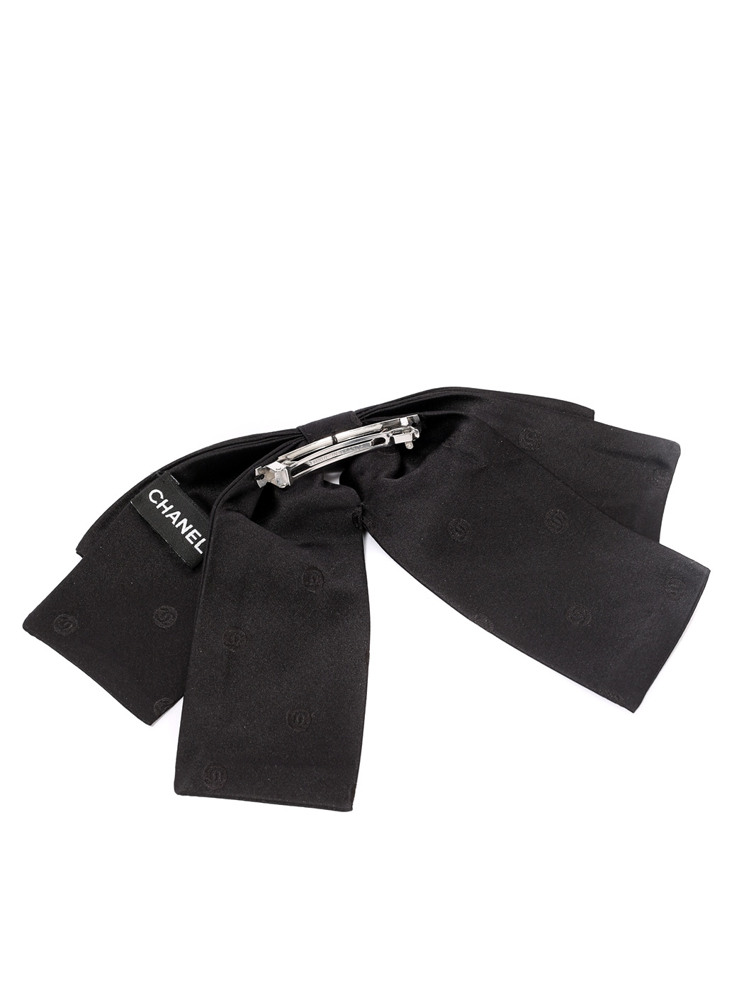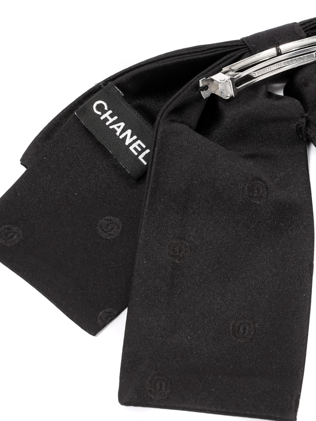 Les nœuds ont le pouvoir de rendre chacune de vos tenues immédiatement plus charmante. Taillé avec le plus grand soin en satin de soie brillant brodé de la signature Coco Chanel, cette barrette est une pièce d'exception. Intemporel, élégant et raffiné, elle est parfaite pour habiller vos tenues.