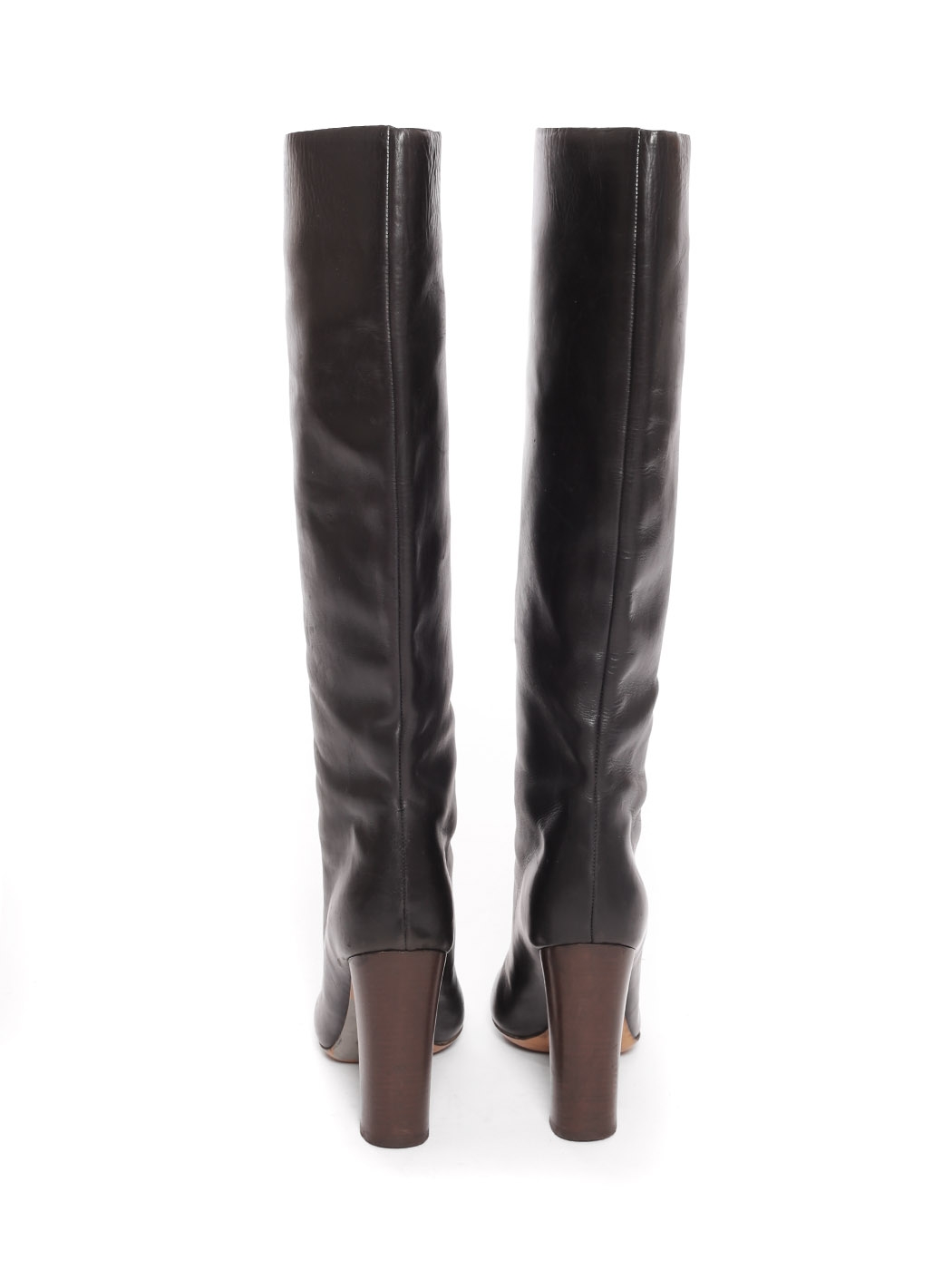 Bottes hautes à talon bois en cuir noir Prix boutique 1000€ Taille 39