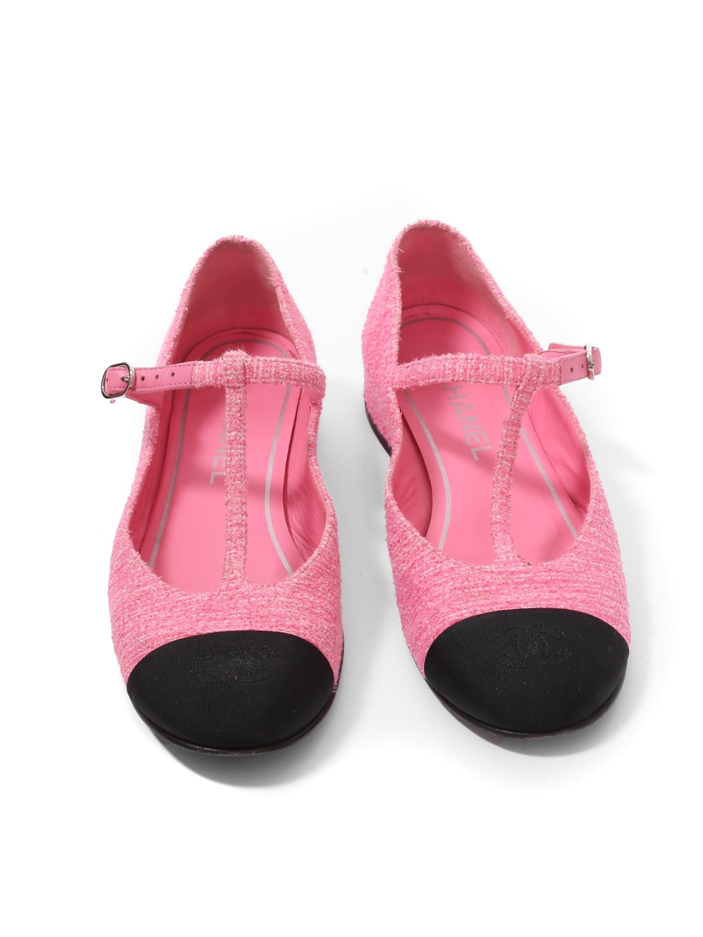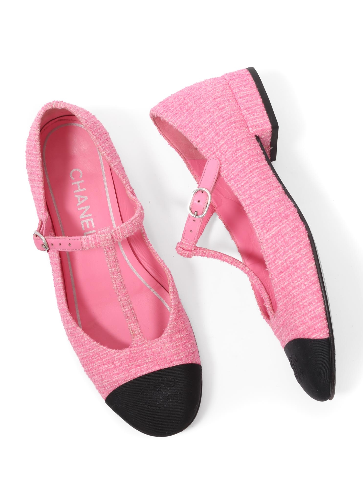 Ballerines plates en tweed rose et bouts noirs CROISIERE 2023 Prix boutique 1100€ Taille 38