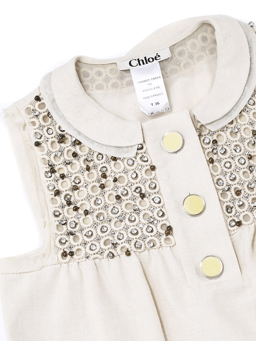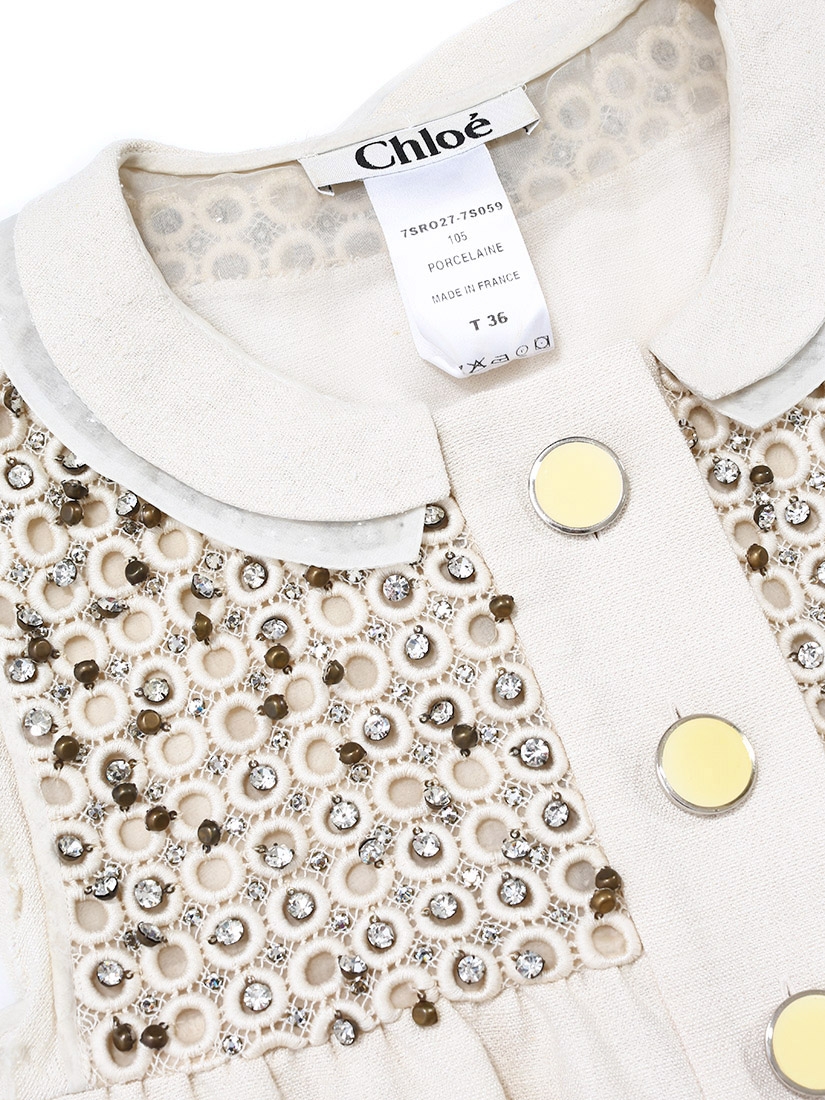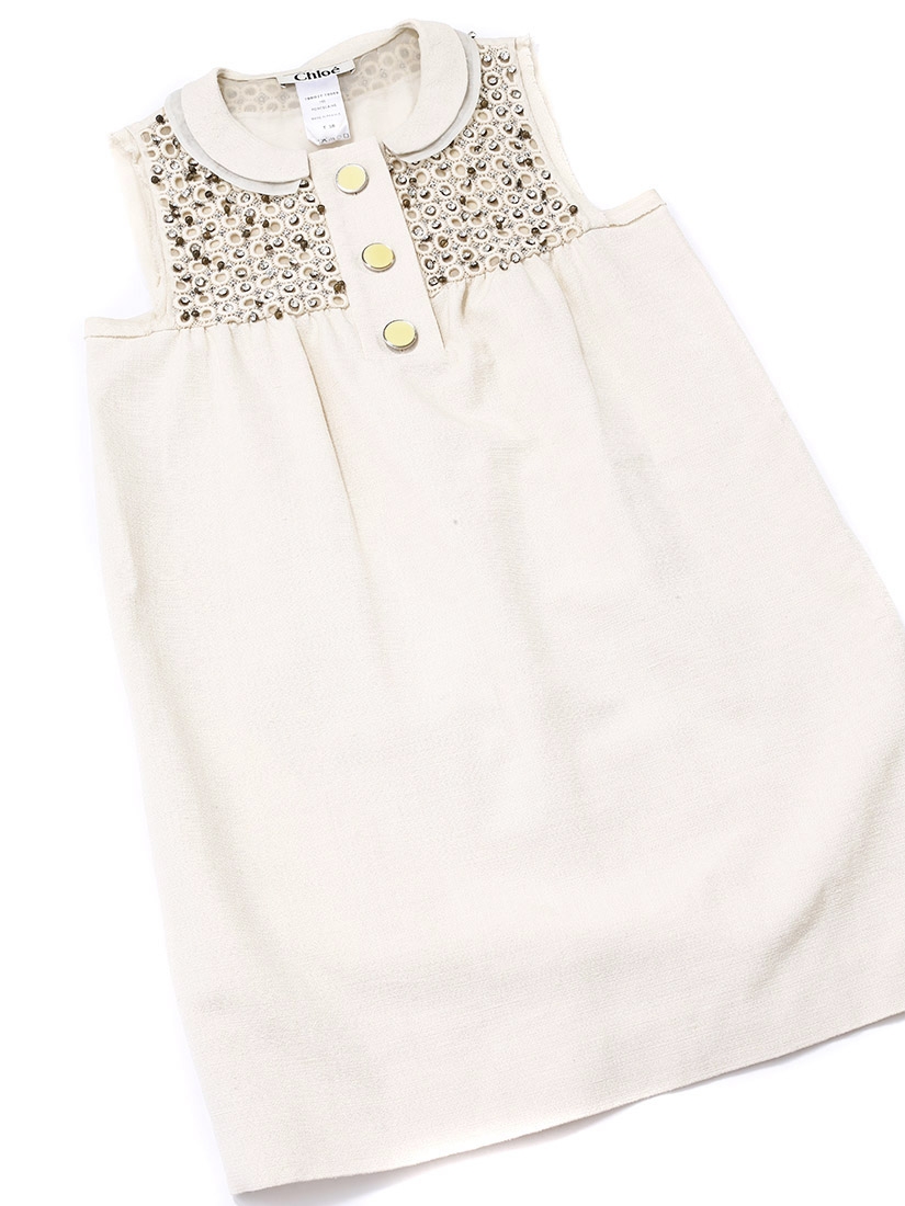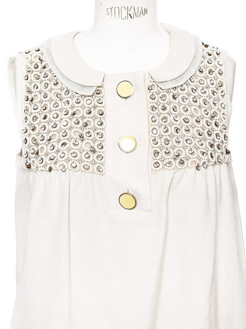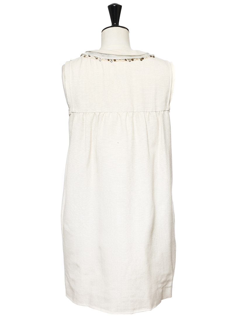 Robe de cocktail Couture en coton et soie beige brodée de cristaux Swarovski Px boutique 2000€ Taille 36