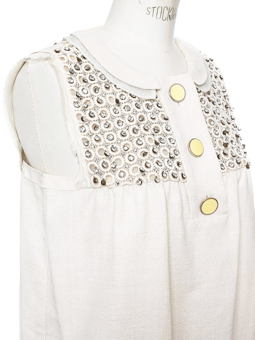 Brodée à la main de cristaux Swarovski, elle est taillée dans un sublime coton épais d'une douce couleur porcelaine. Portez là pour un cocktail, un mariage ou une soirée tapis rouge avec des sandales à haut talon et un clutch dans les tons argenté, noir ou nude.