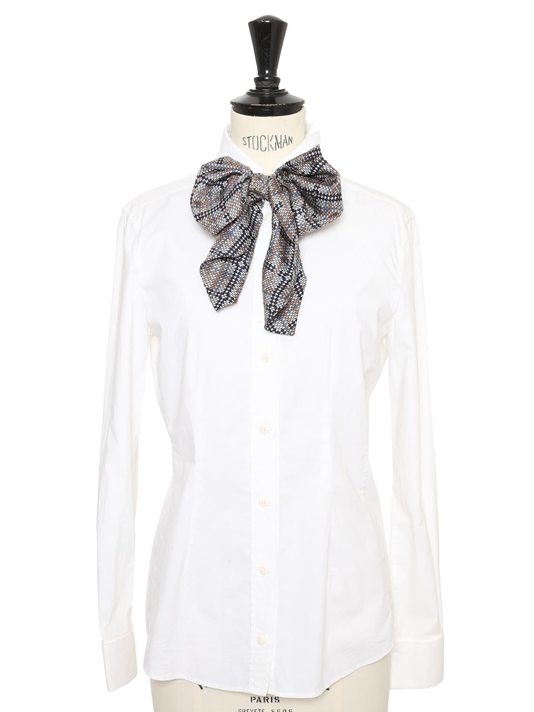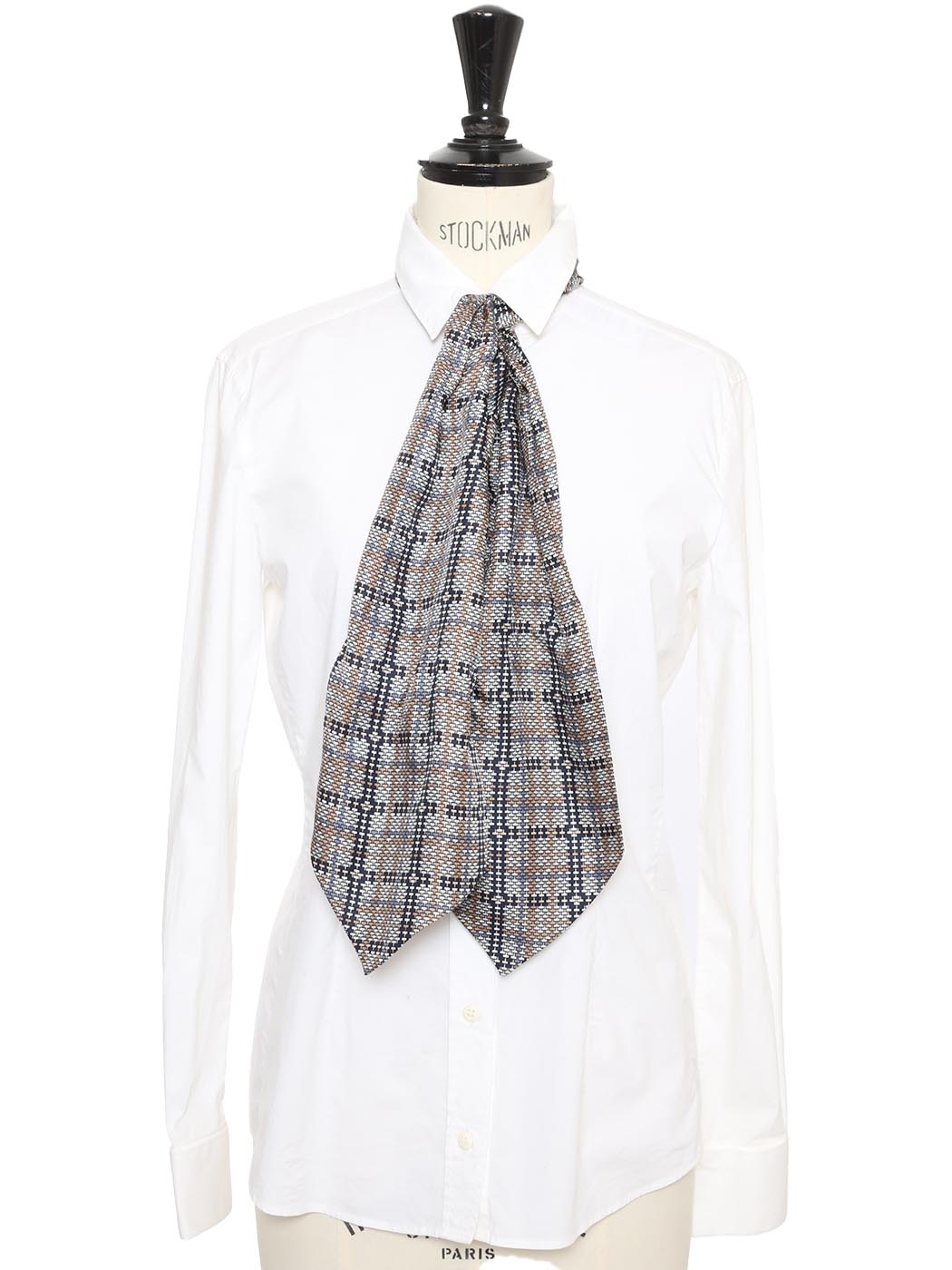 Foulard en soie imprimé bleu marron crème Prix boutique 370€