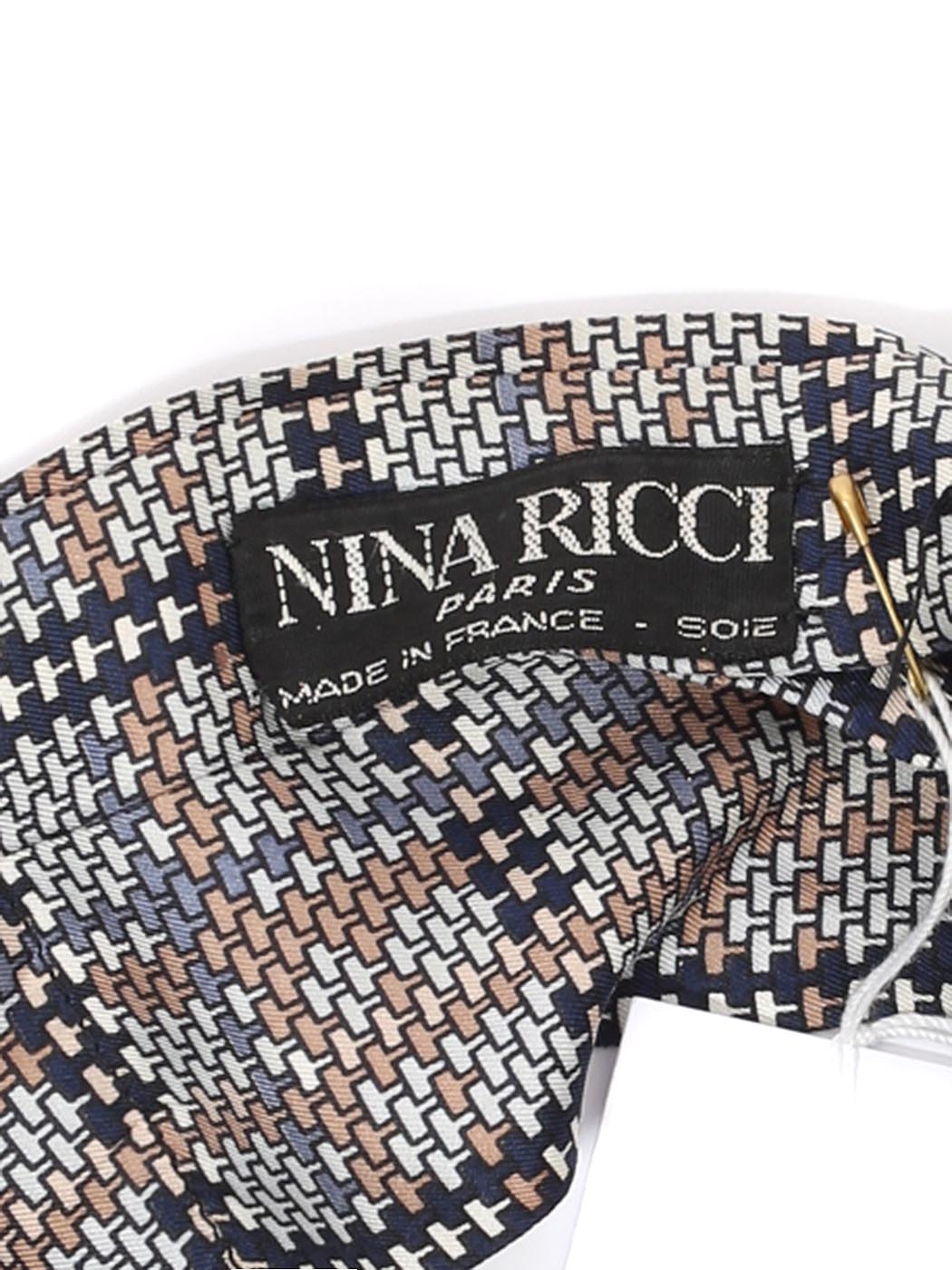 Ce foulard en soie de Nina Ricci, orné de carreaux bleus et bruns, est d'une beauté intemporelle. Sa combinaison de couleurs élégantes en fait un accessoire polyvalent, pouvant être stylisé de multiples façons : en bandeau, noué autour du cou ou même attaché à un sac pour une touche raffinée. Un must-have pour ajouter une touche de sophistication à toutes vos tenues.