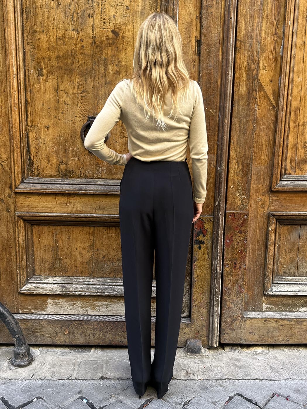 Pantalon taille haute en 100% soie noire Prix boutique 1400€ Taille 36