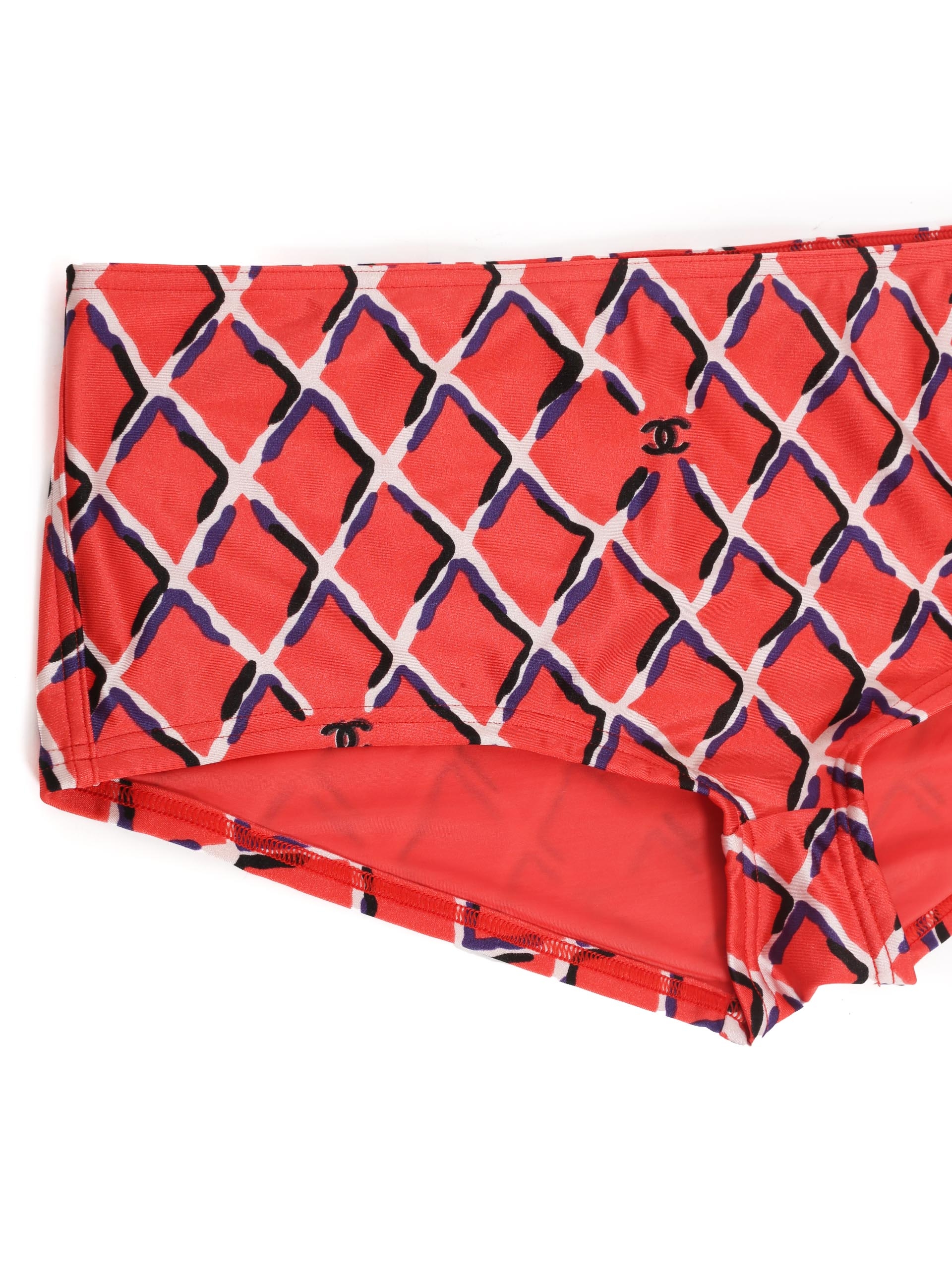Culotte de maillot de bain shorty motif losanges rouge blanc bleu marine Prix boutique 550€ Taille XS/S