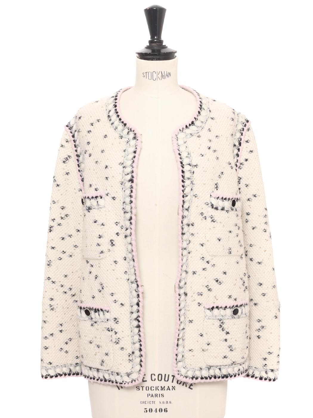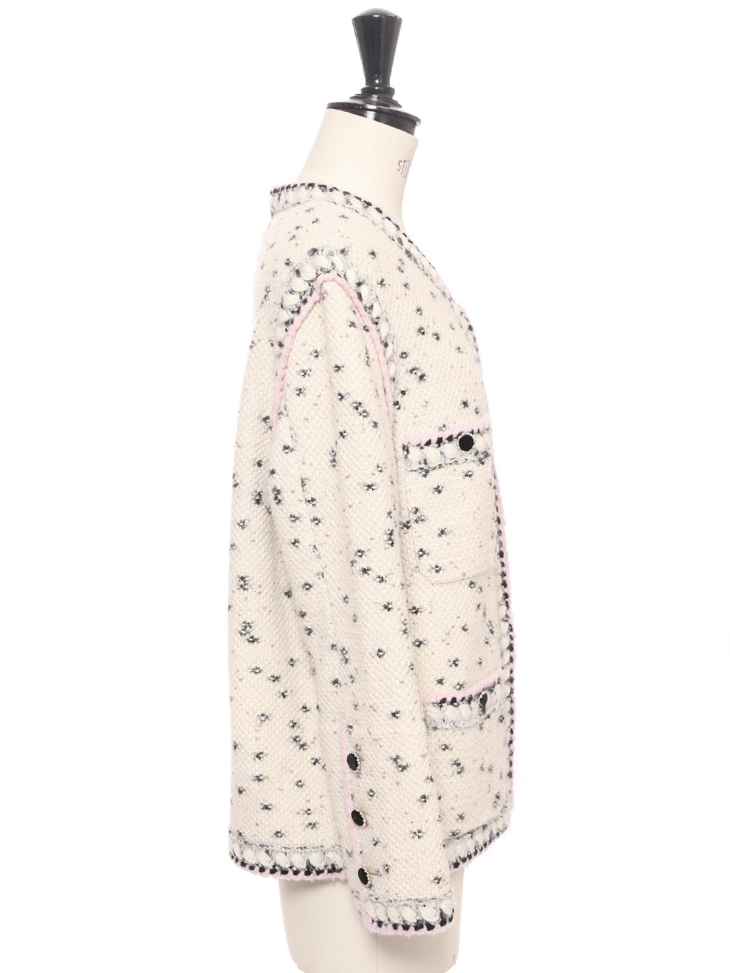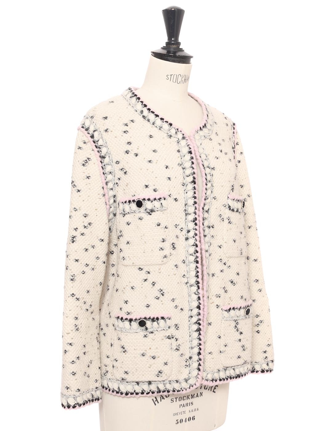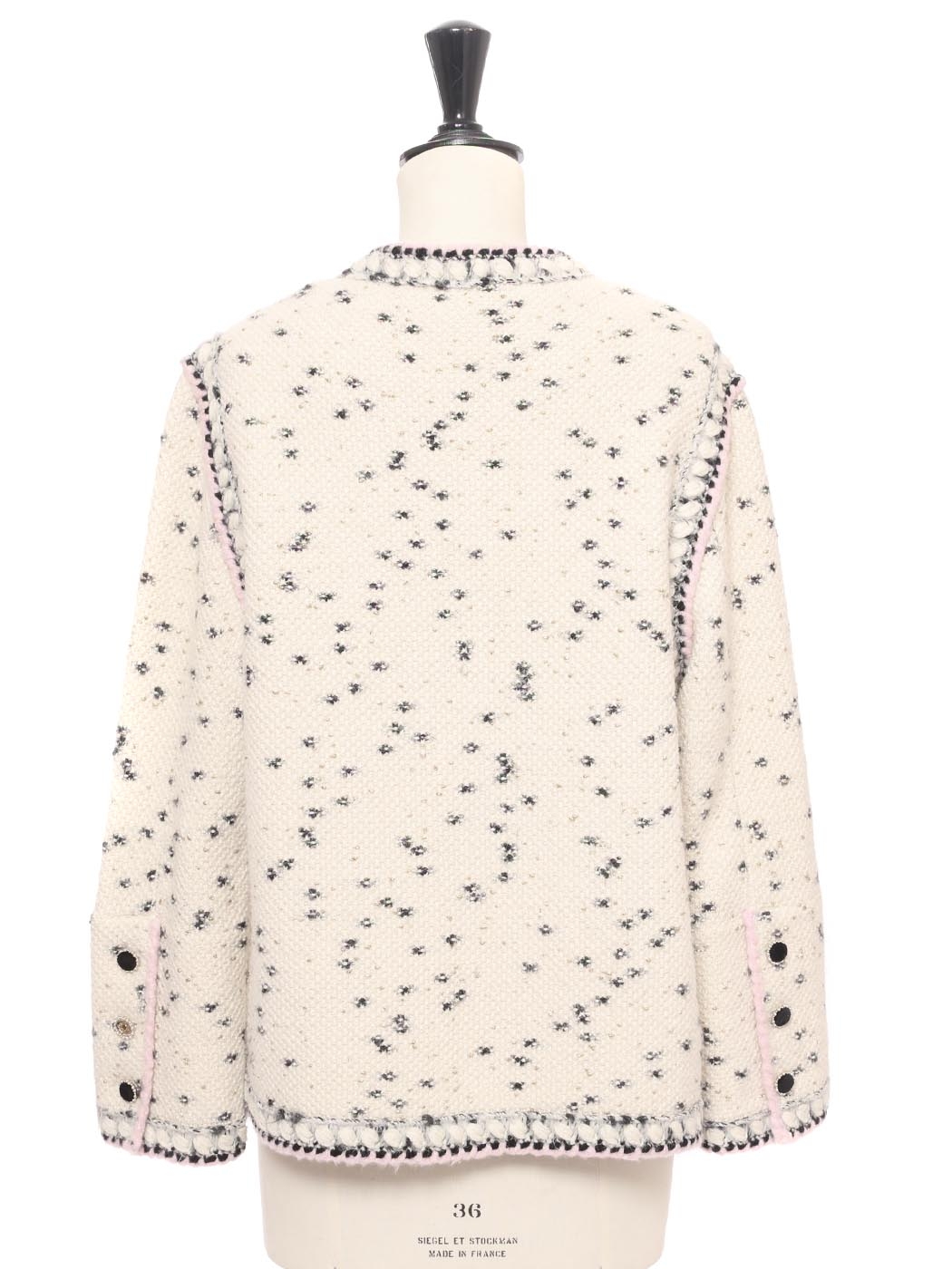 Veste en laine et cachemire blanche noire lilas et dorée Pre-Fall 2021 Prix boutique 3500€ Taille 40
