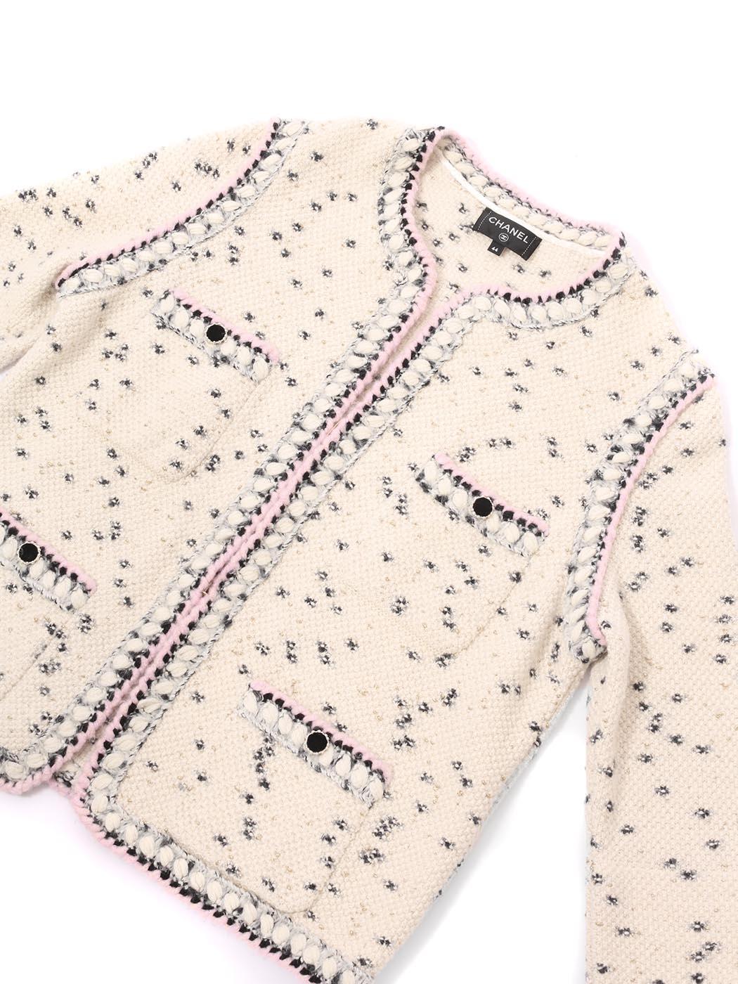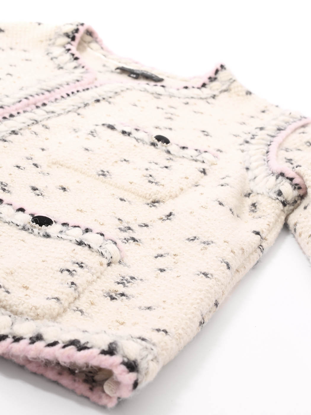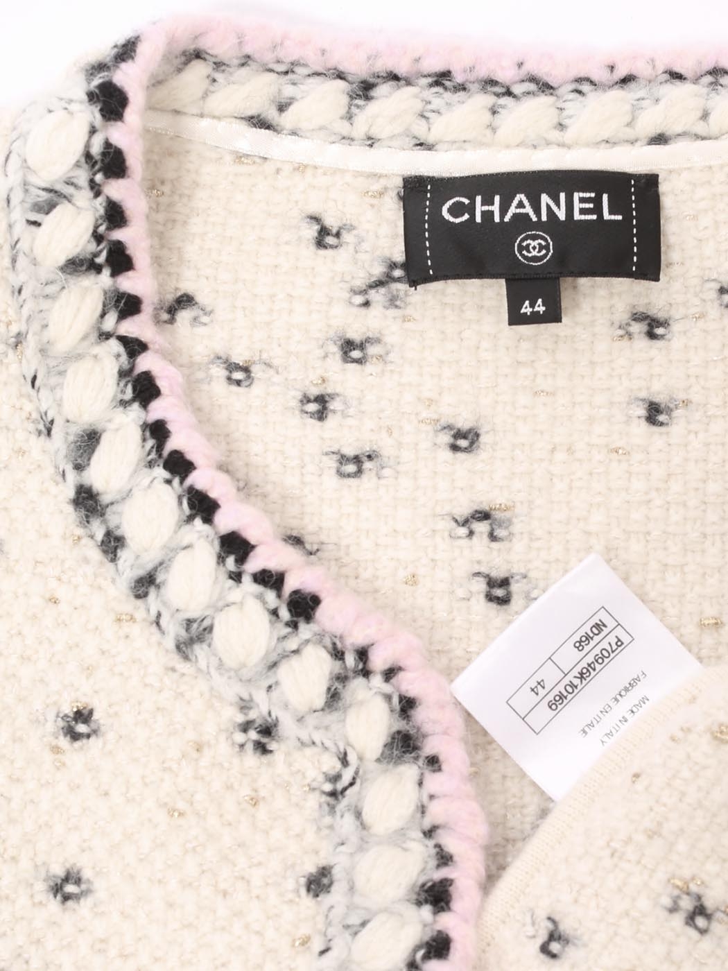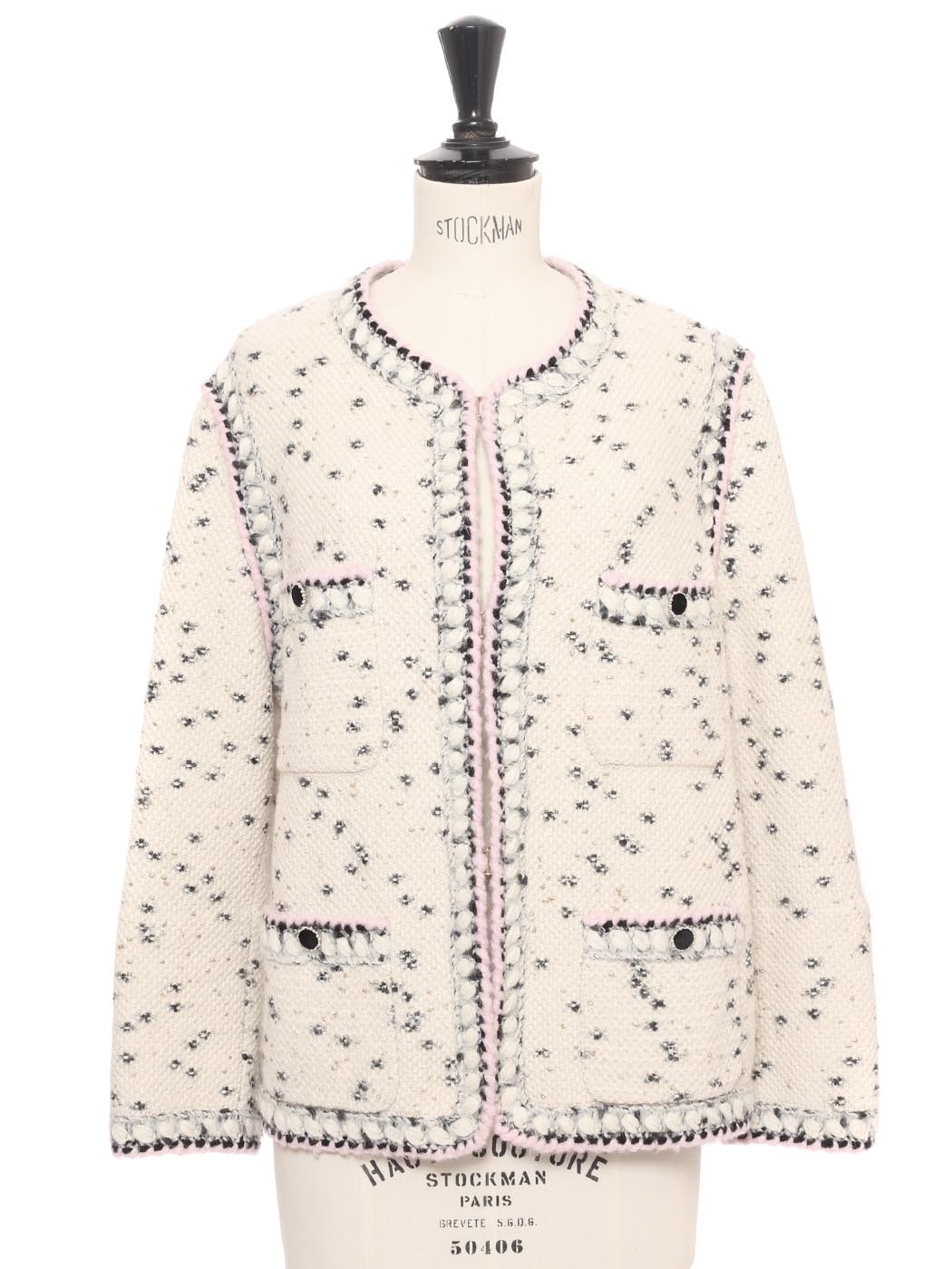 Veste en laine et cachemire blanche noire lilas et dorée Pre-Fall 2021 Prix boutique 3500€ Taille 40