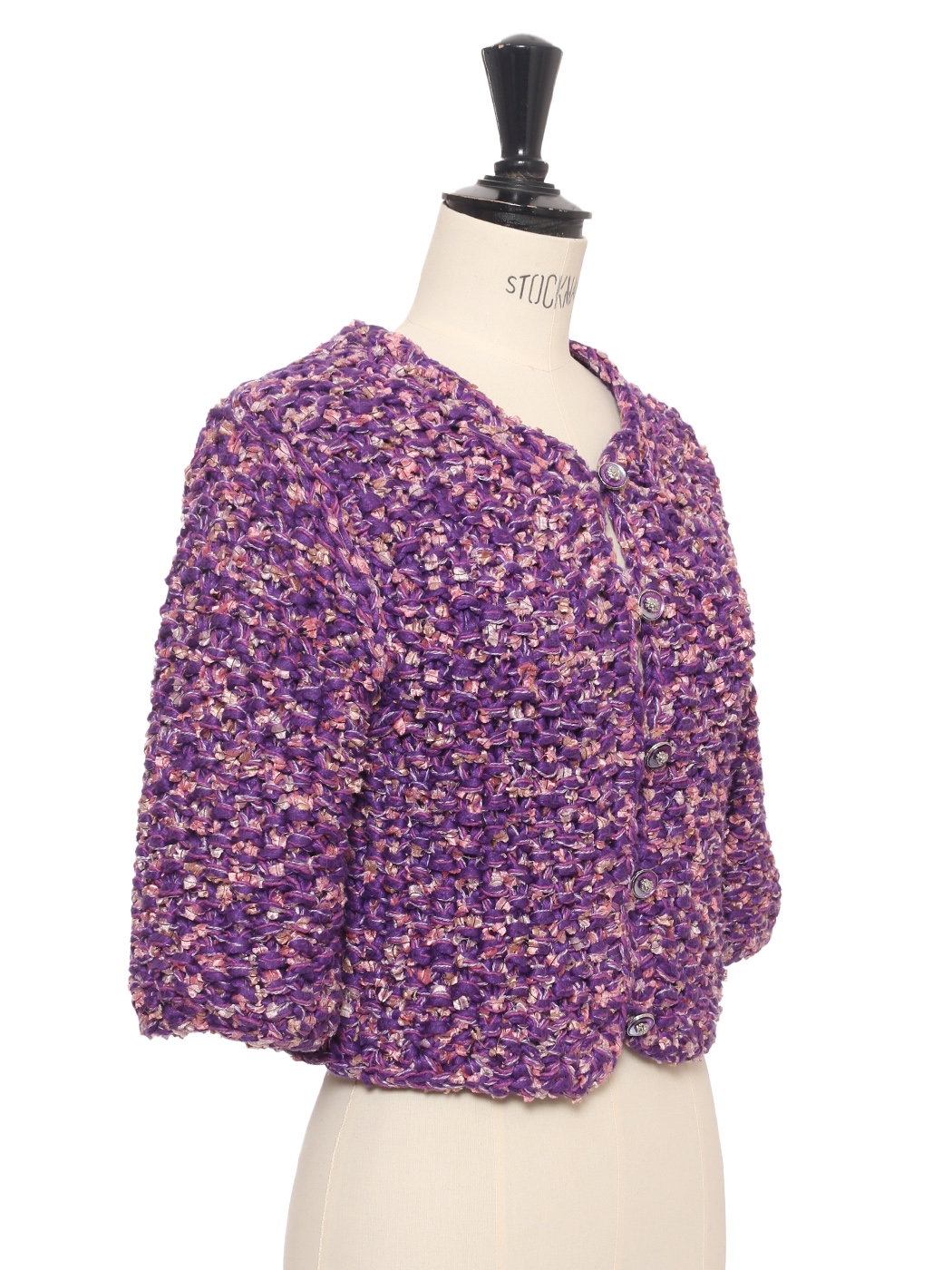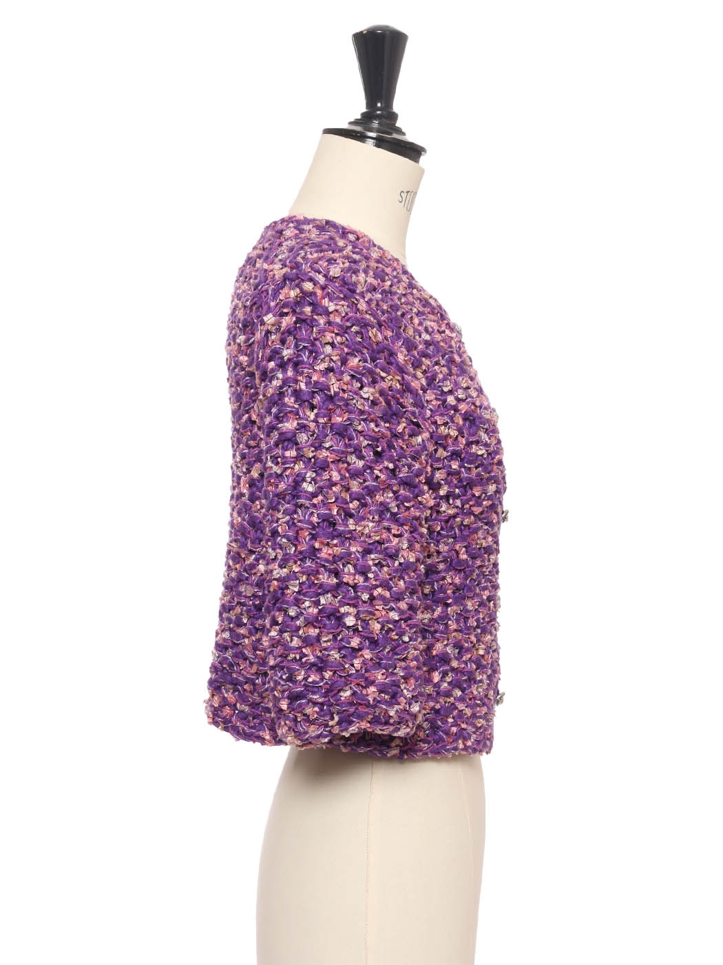 Veste gilet par LESAGE en soie violet et rose Eté 2022 Prix boutique 4000€ Taille 36