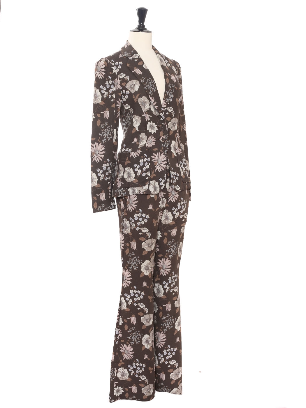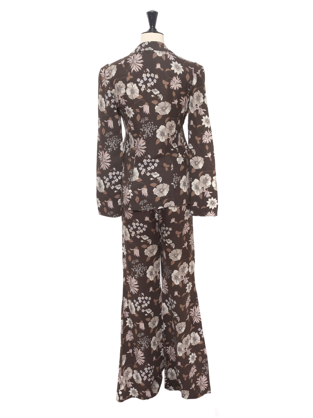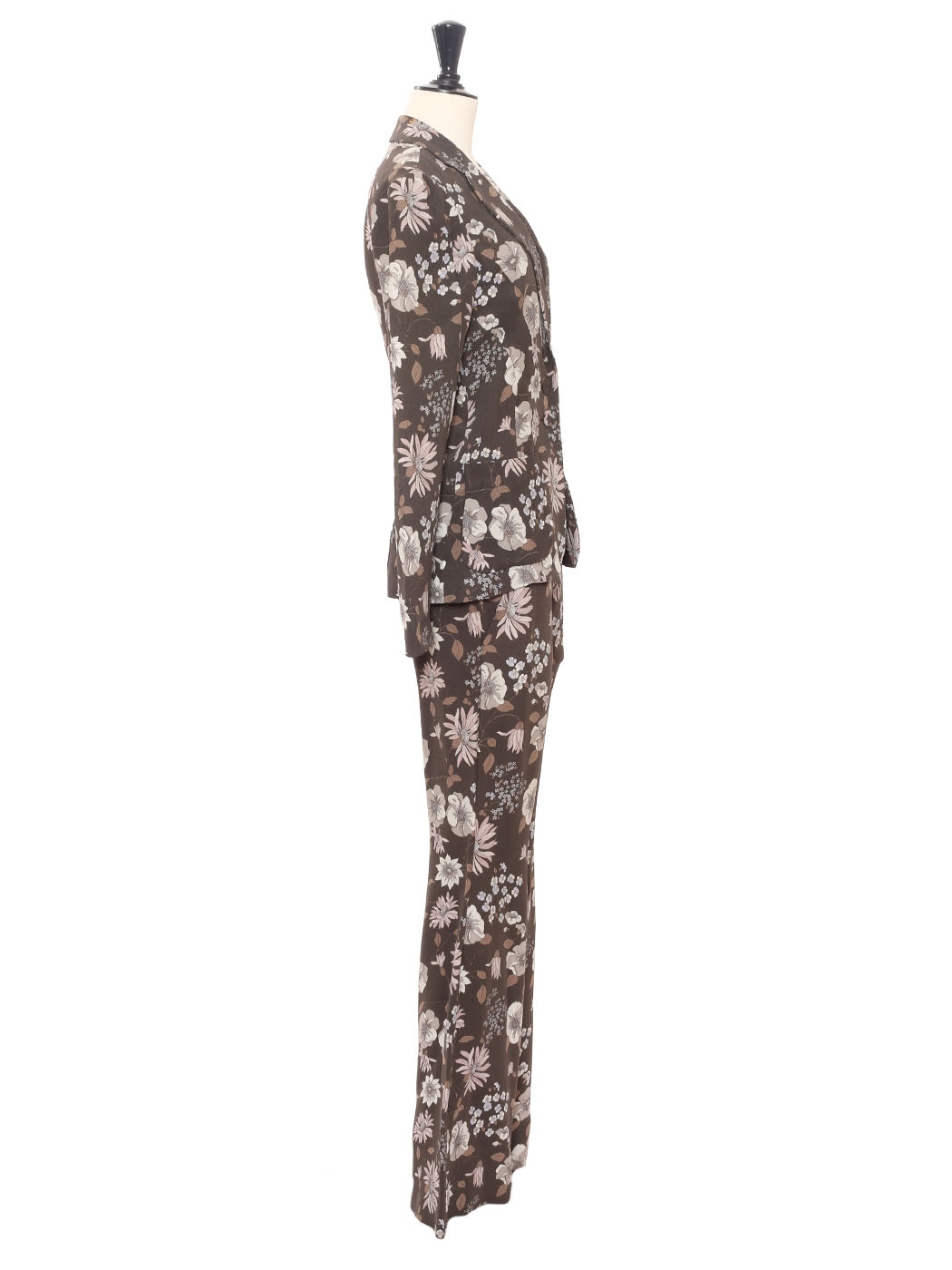 Ce tailleur veste pantalon imprimé fleuri est une petite merveille de la Couture Française. Coupée à la perfection, c'est un tailleur d'une divine élégance.