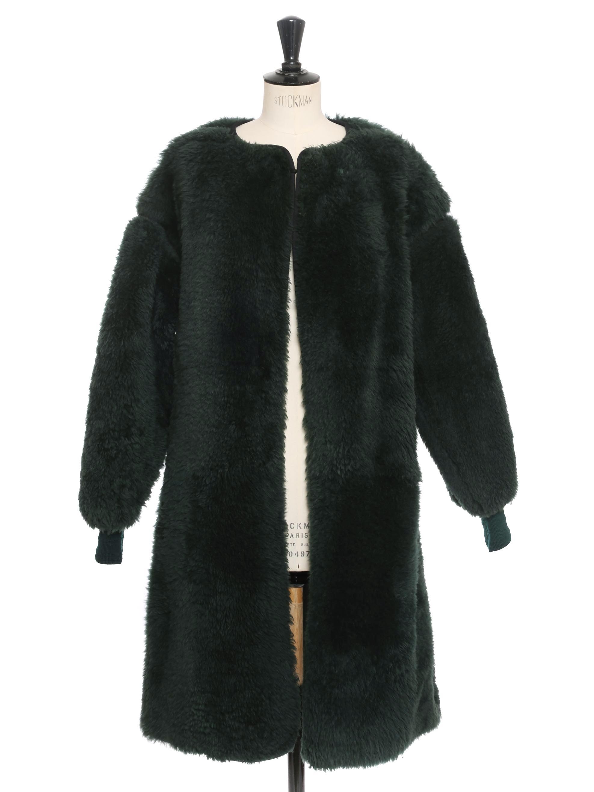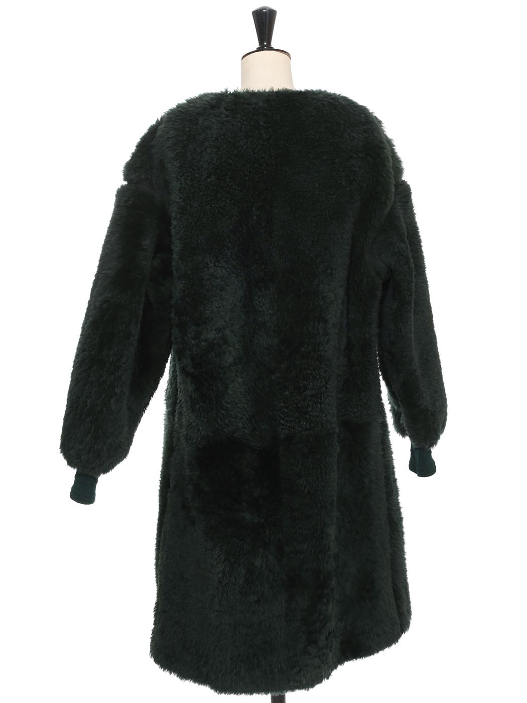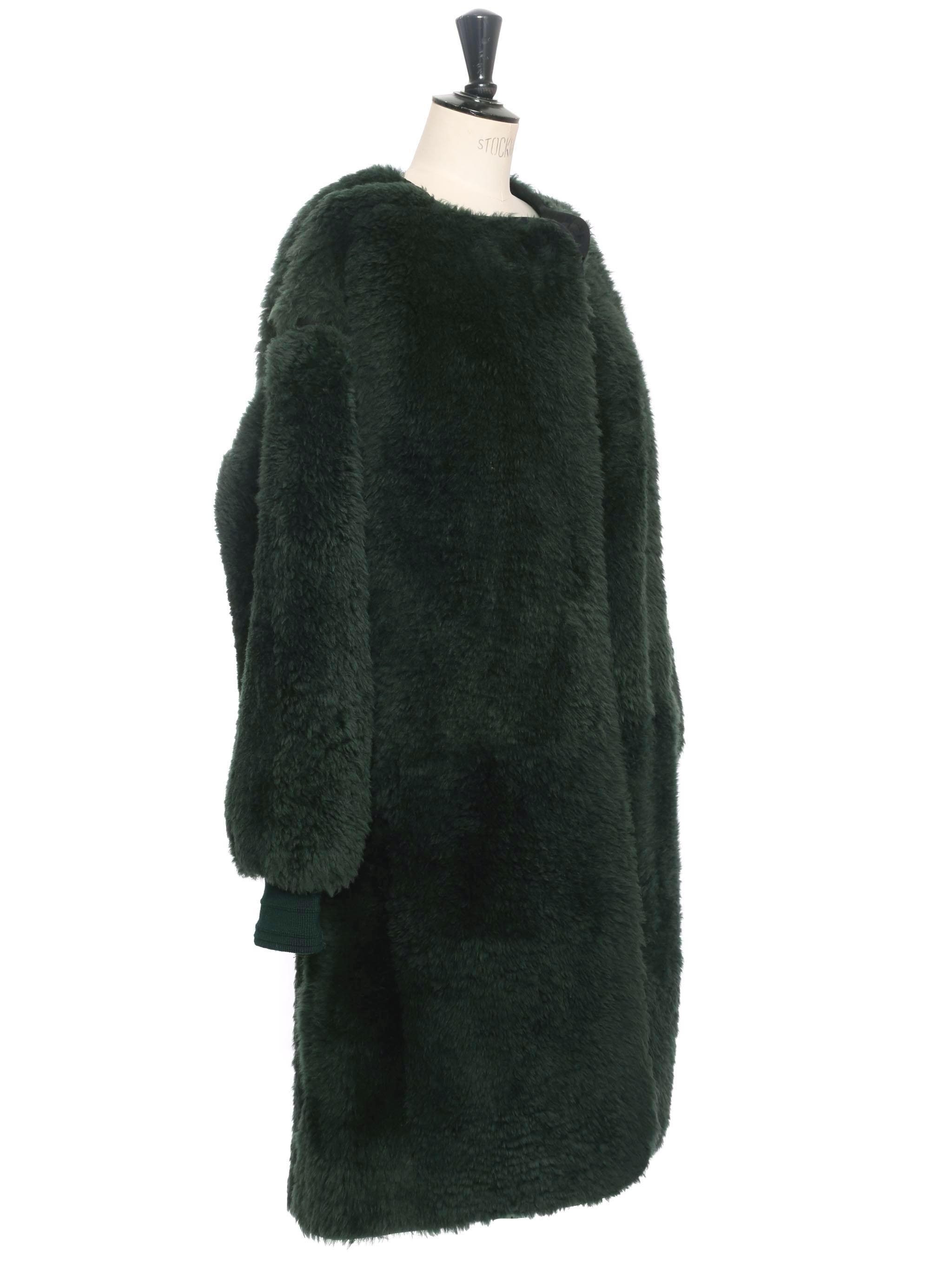 Magnifique manteau en peau lainée vert foncé de la maison de couture française CHLOE.