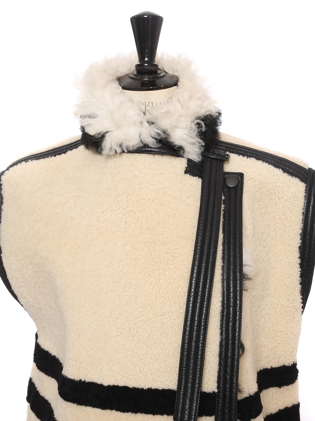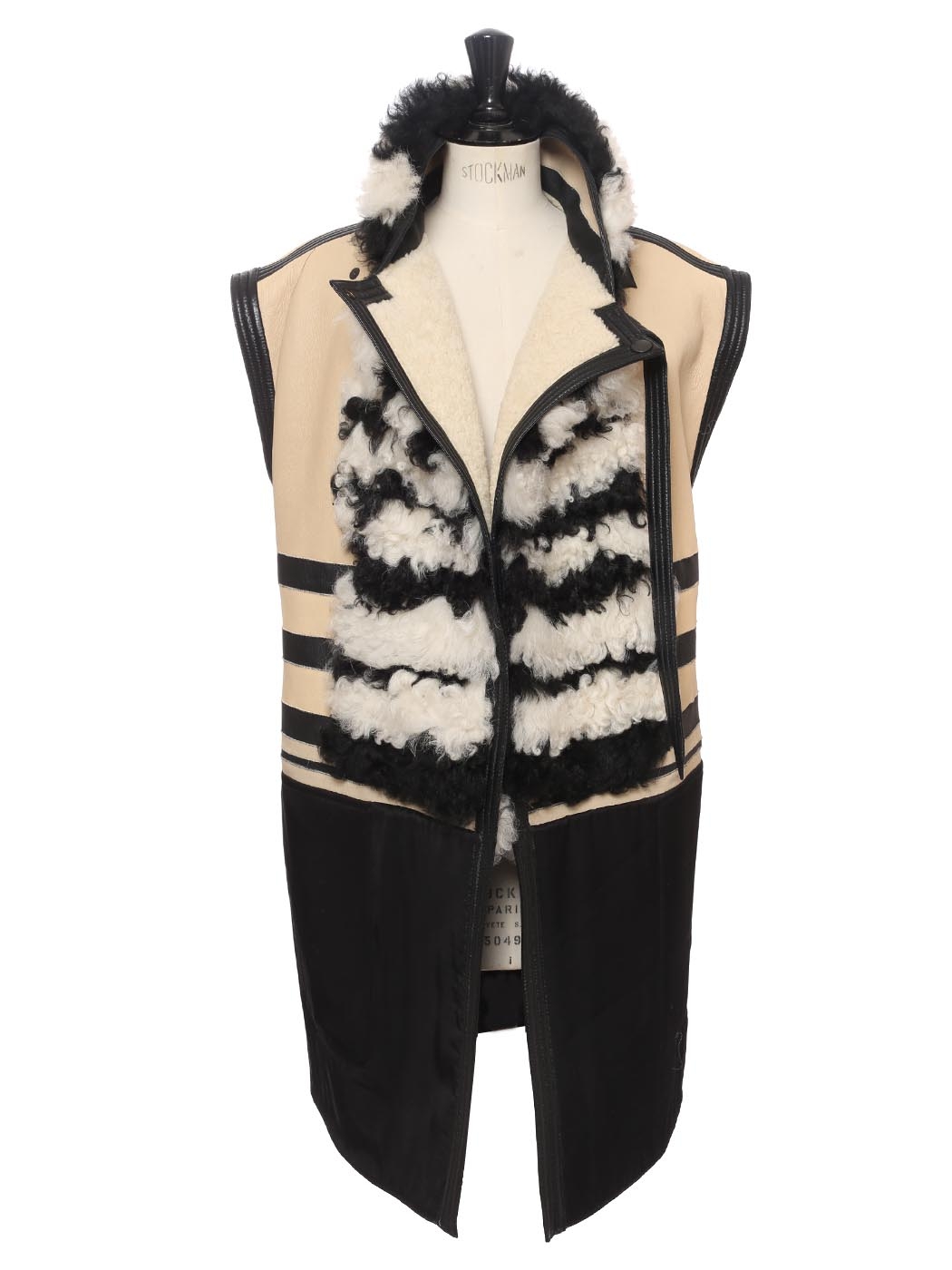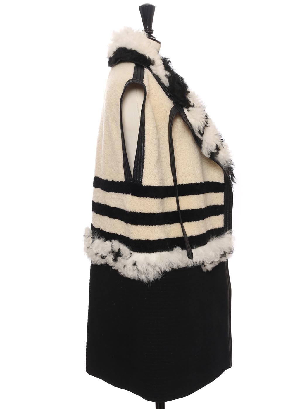 Manteau sans manche shearling en peau et cuir blanc noir Fall 2014 Prix boutique 4000€