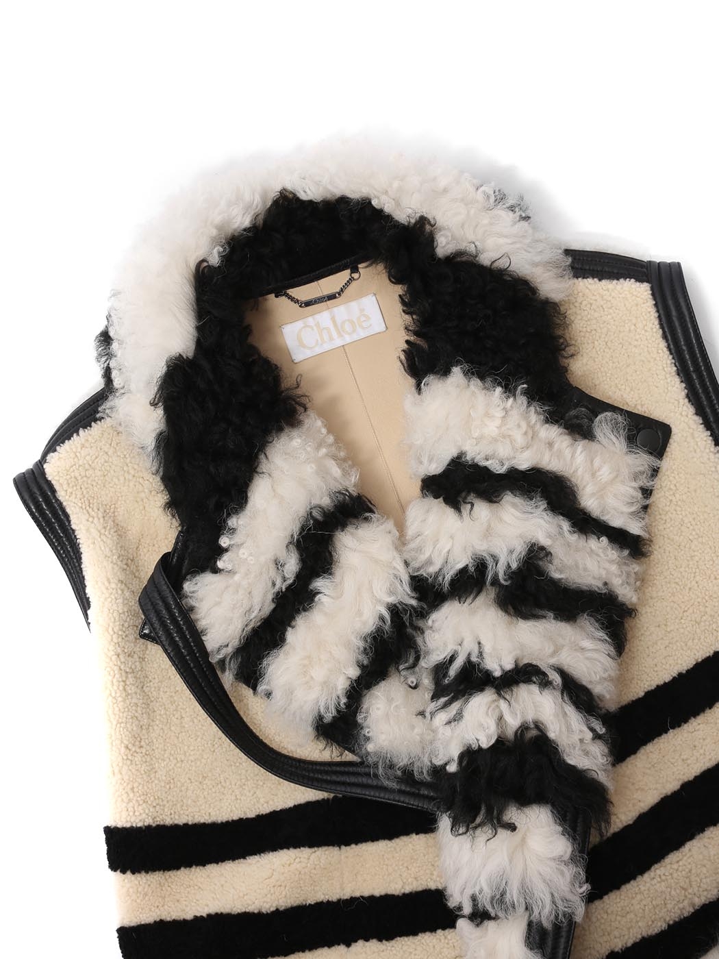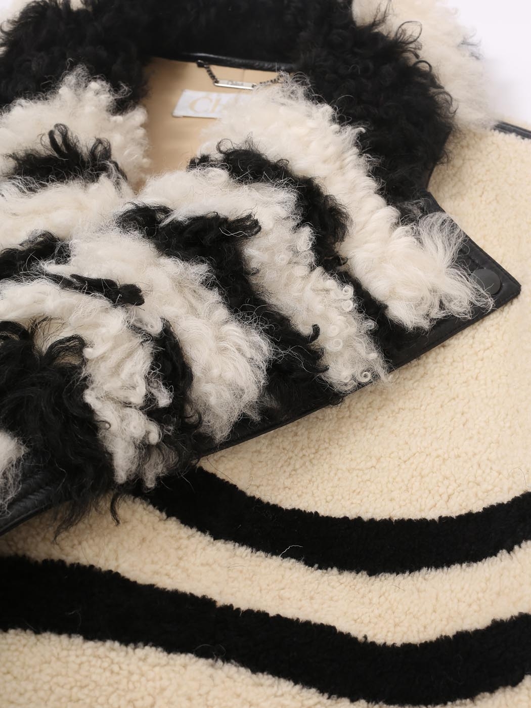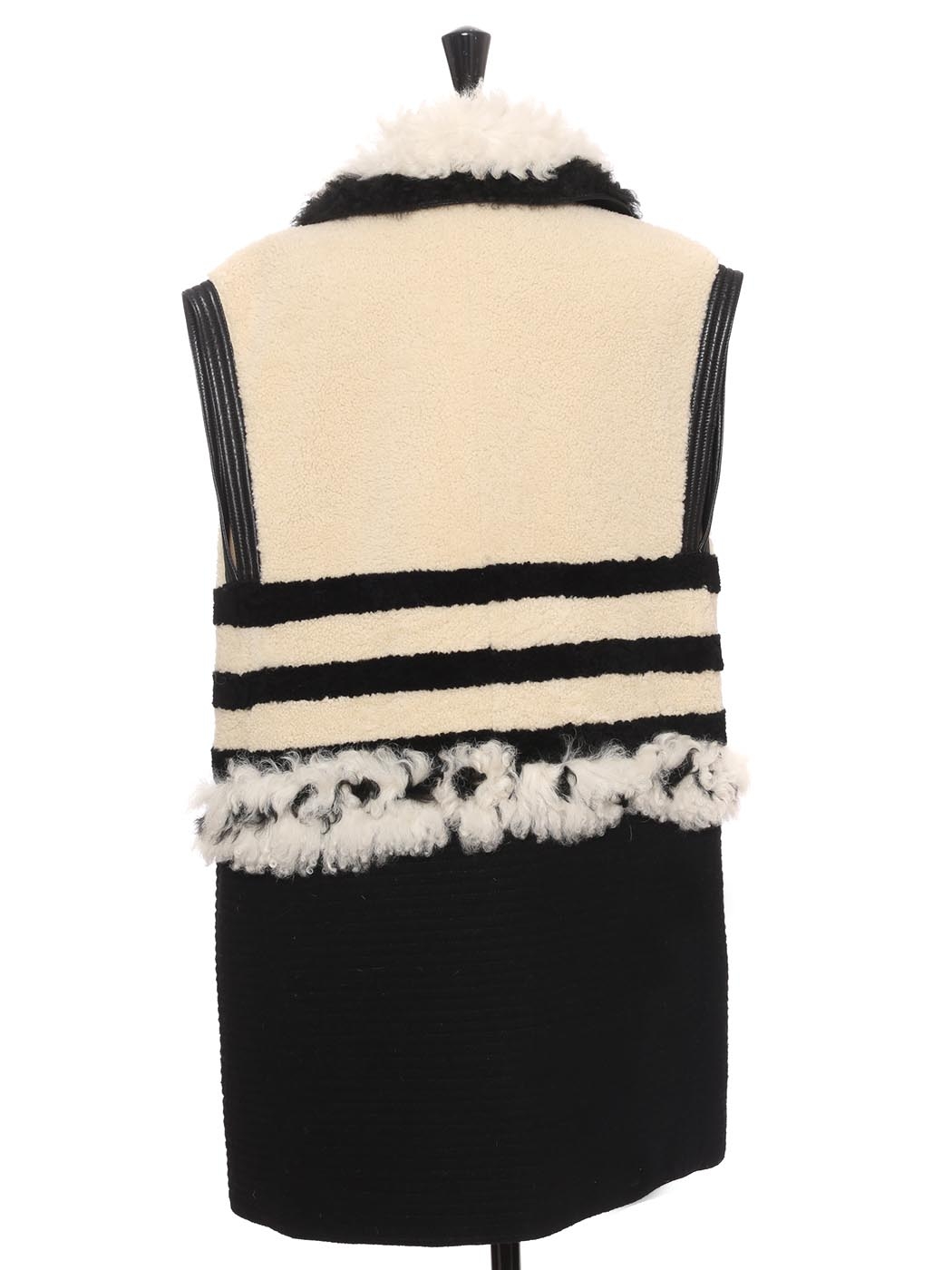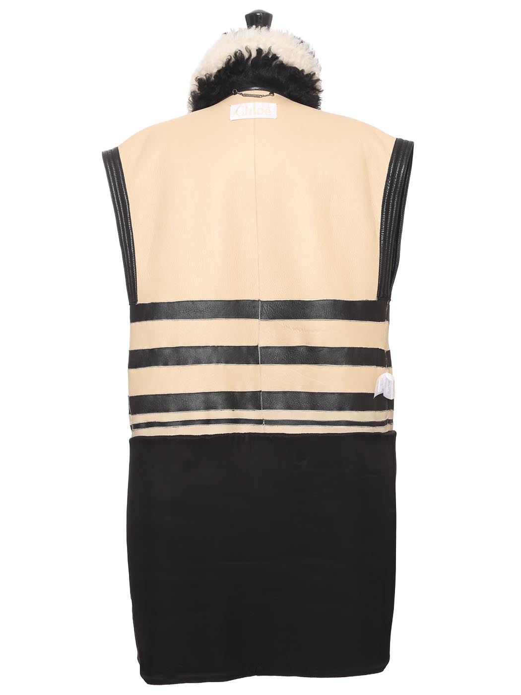 Manteau sans manche shearling en peau et cuir blanc noir Fall 2014 Prix boutique 4000€