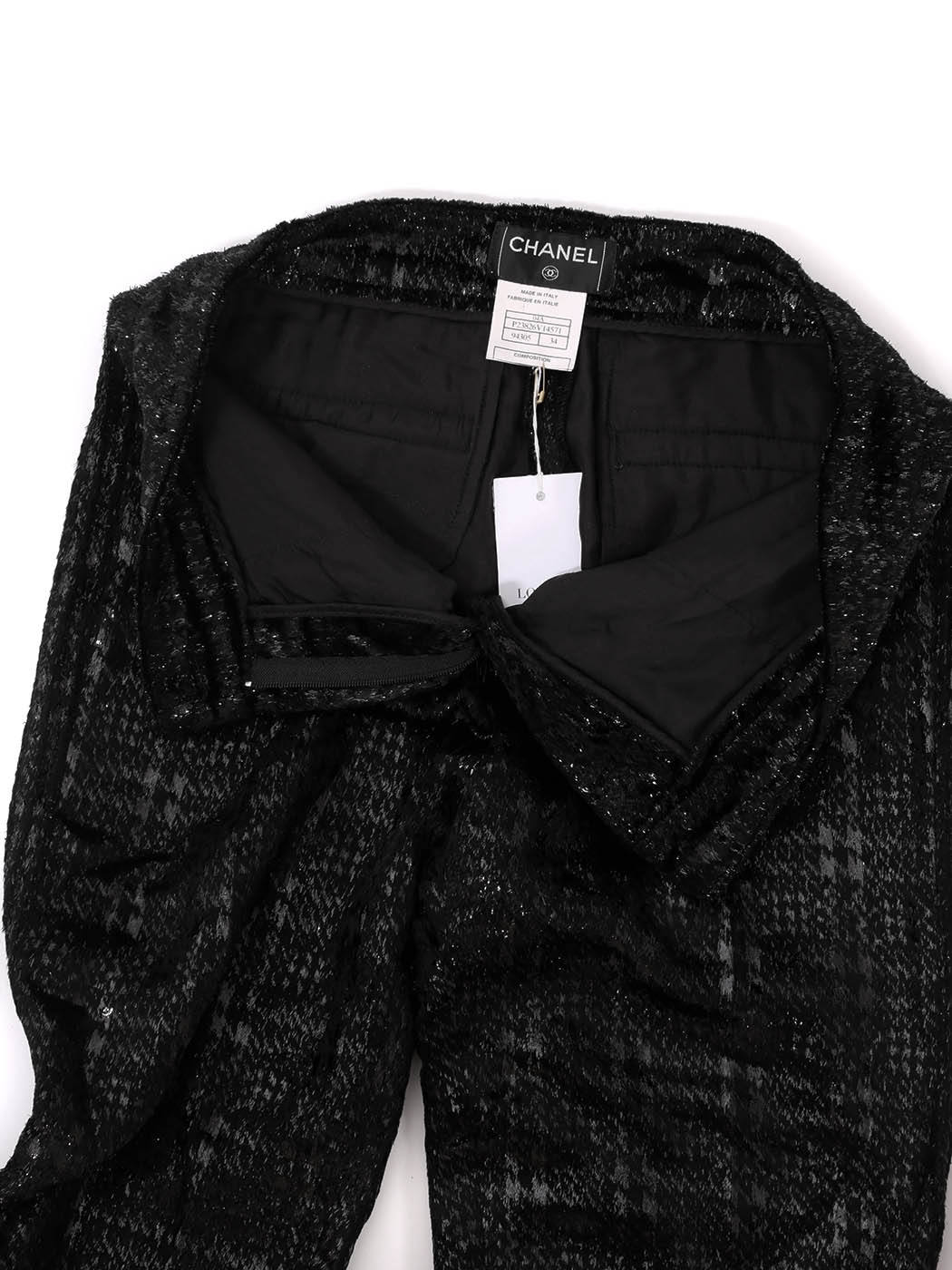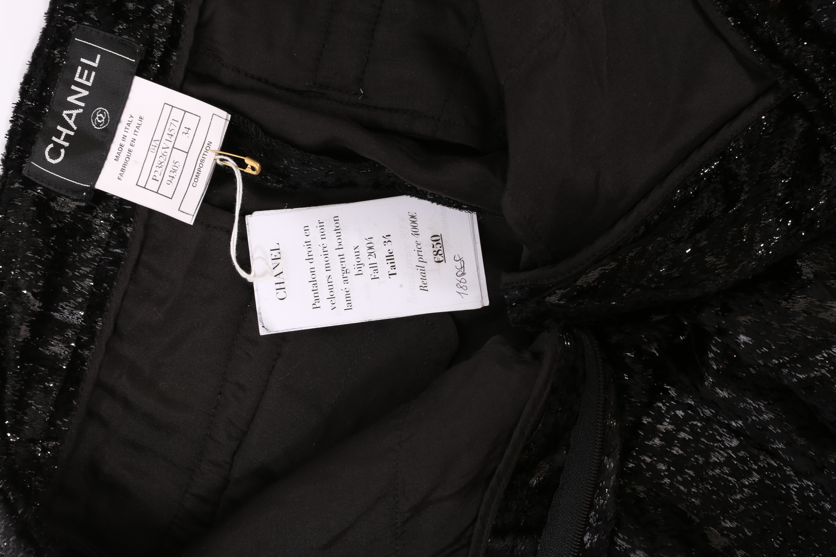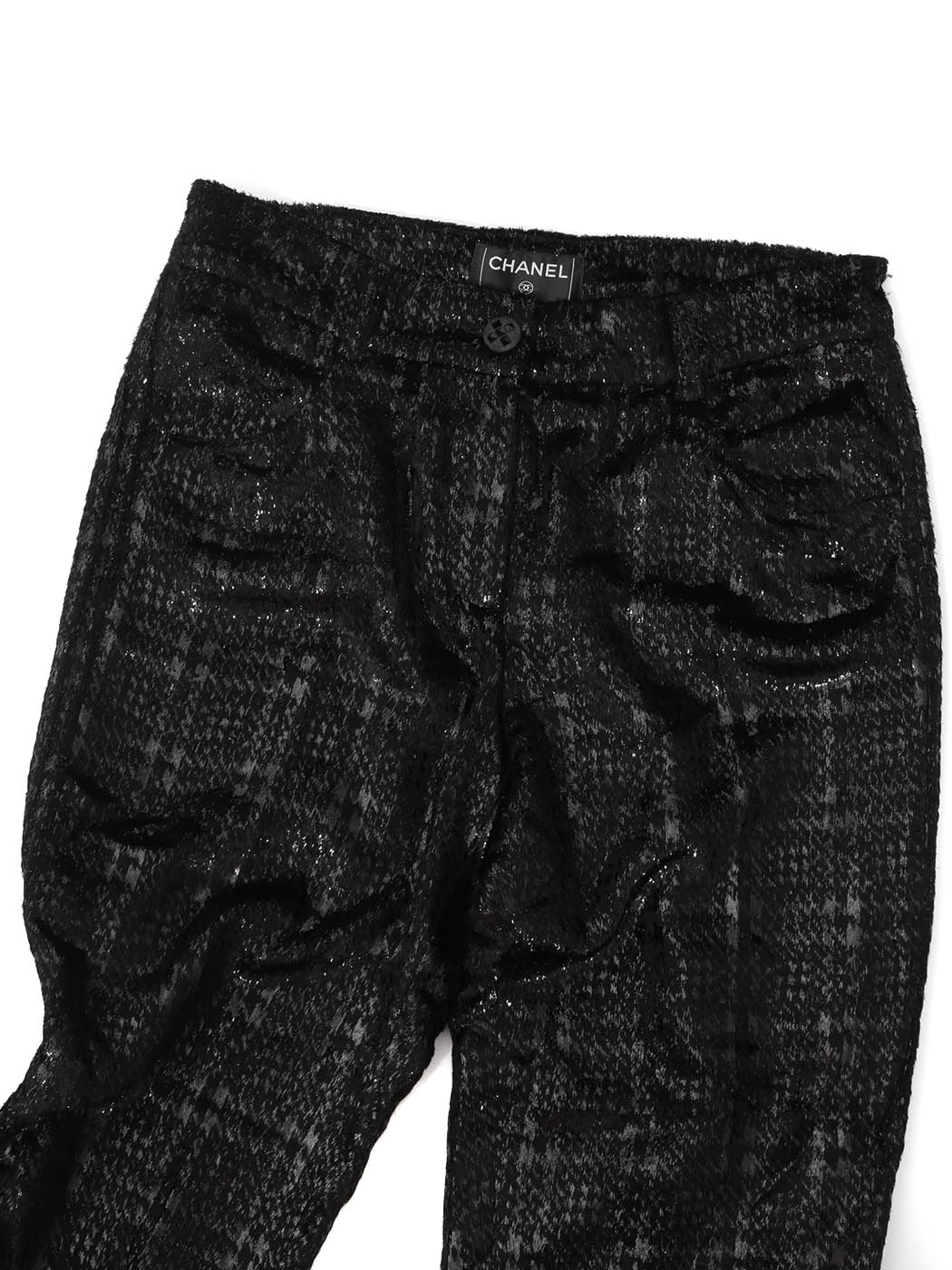 Iconique pantalon en velours moiré noir de la Maison de Couture française CHANEL.
