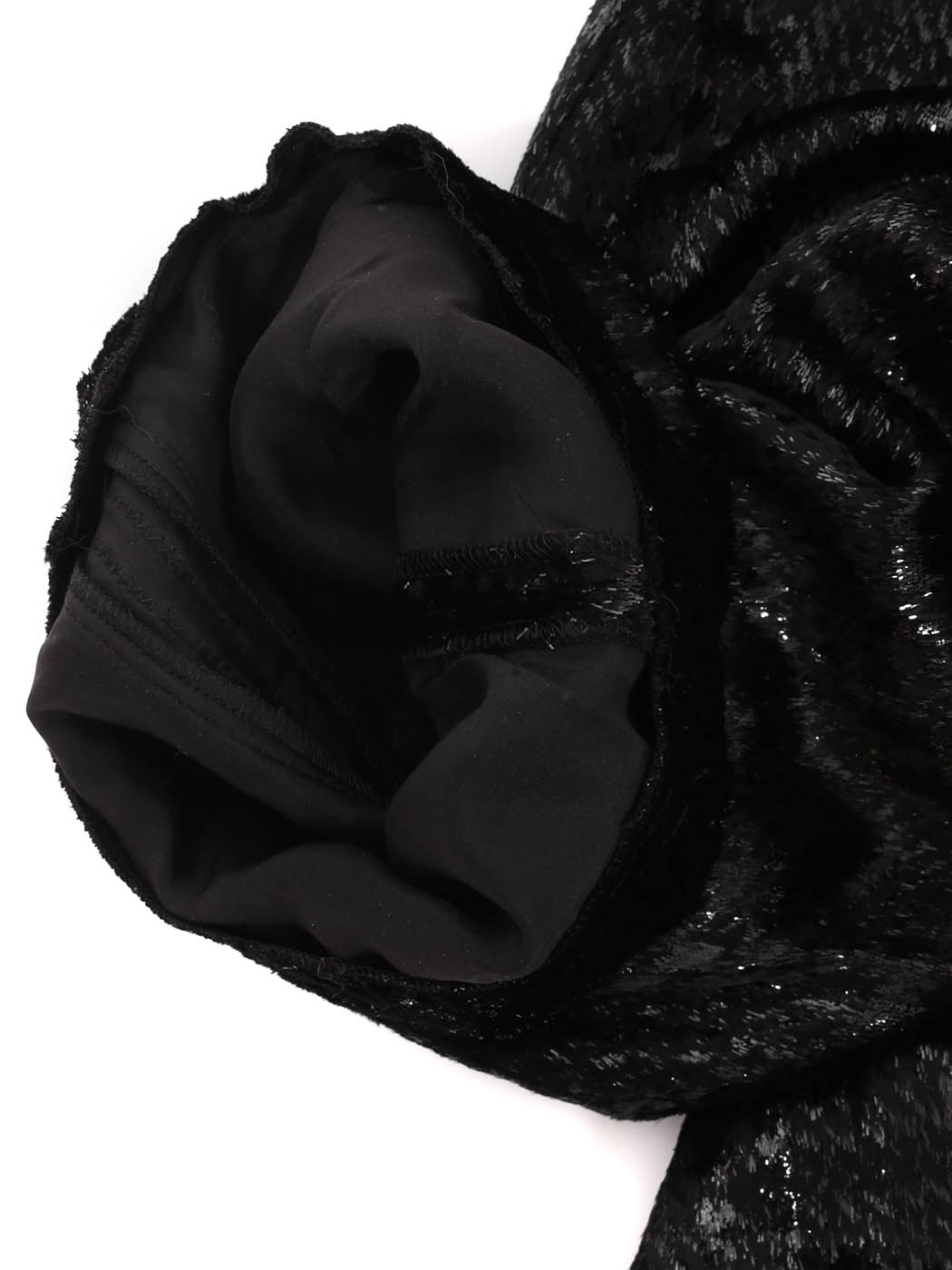 Velours noir brodé de paillette en lurex 60% viscose, 25% soie, 15% lurex.