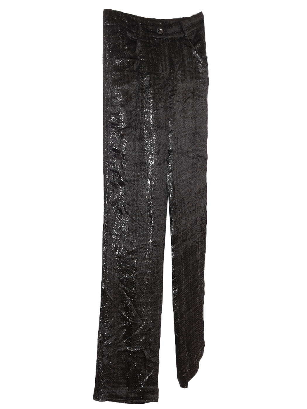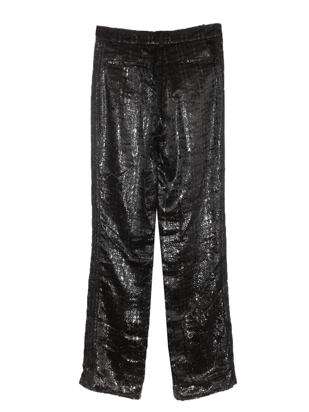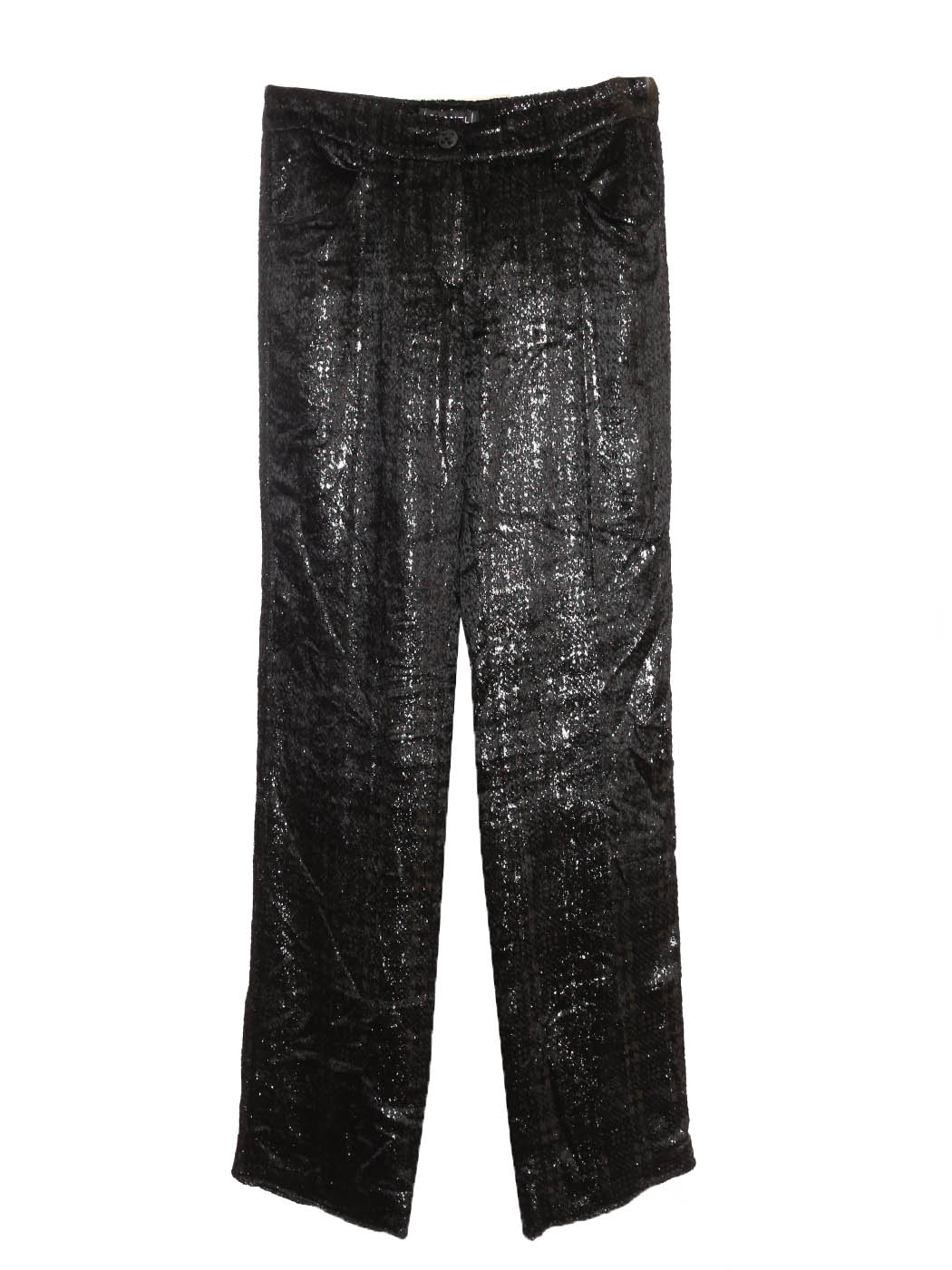 Pantalon droit en velours moiré noir lamé argent bouton bijoux Fall 2004 Prix boutique 4000€ Taille 34