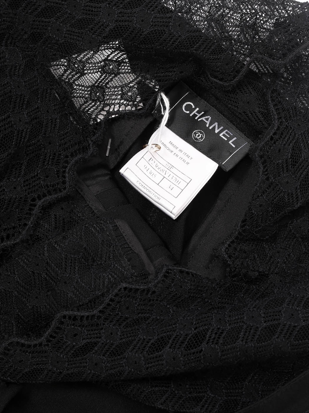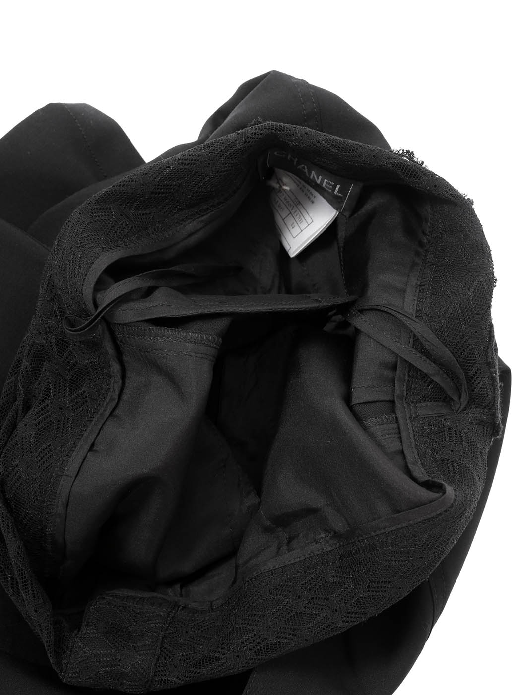 Confectionné dans une somptueuse laine noir et avec une ceinture en dentelle de calais, ce pantalon CHANEL est une merveille de douceur, de raffinement et d'élégance. Coupé à la perfection, il souligne l'extrême finesse de la taille et allonge les jambes de façon vertigineuse. Portez-le avec un top en soie pour une soirée ou une veste en tweed pour dessiner une allure chic dans l'esprit de la Maison de Couture iconique.