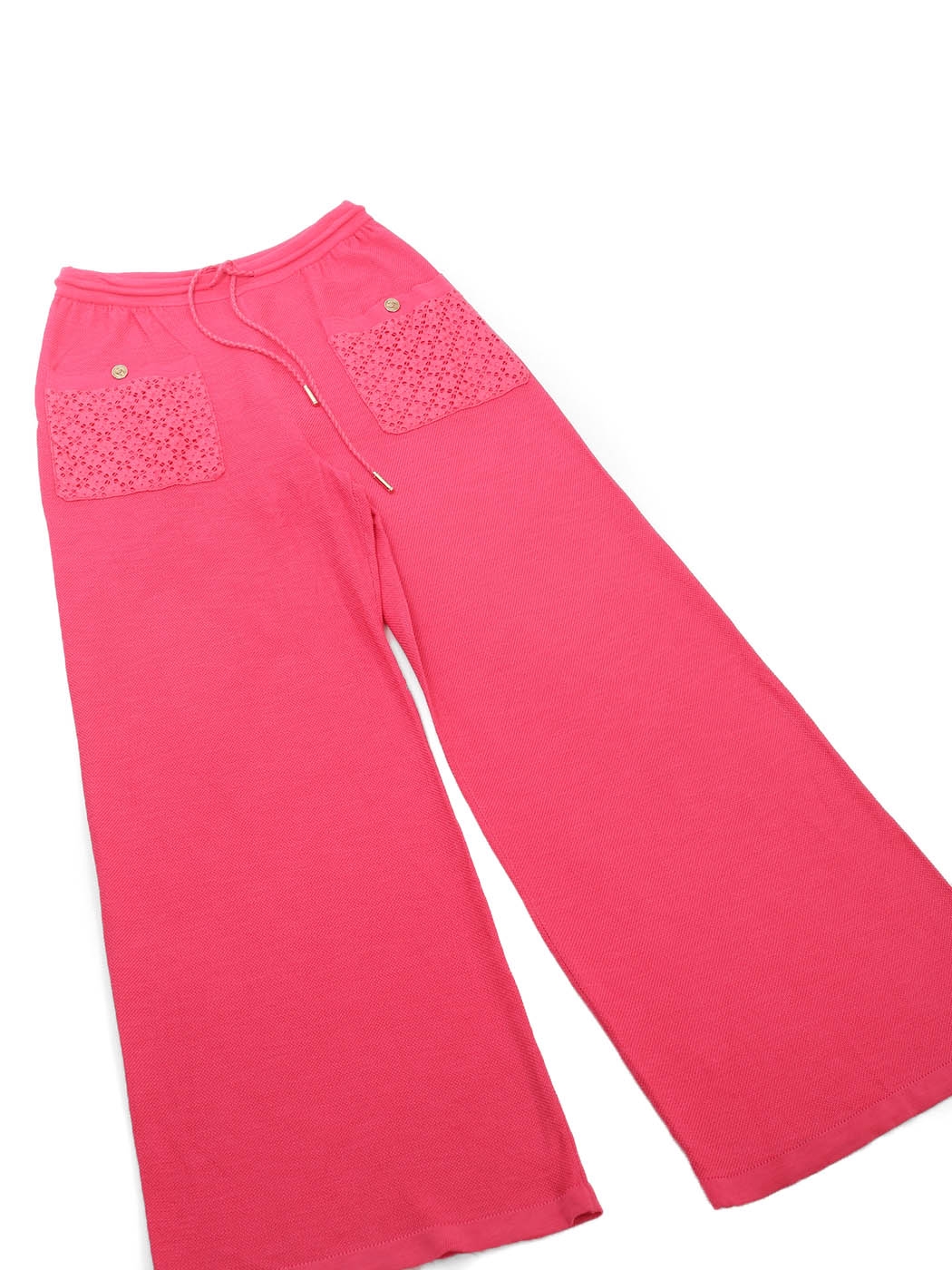 Pantalon taille haute évasée rose bonbon poches broderie anglaise Prix boutique 3200€ Taille 34