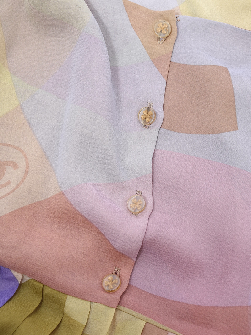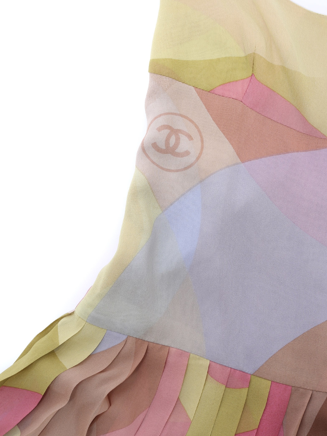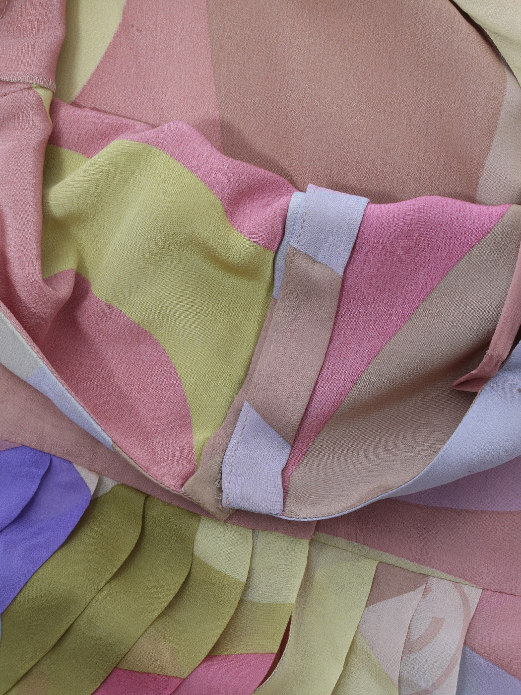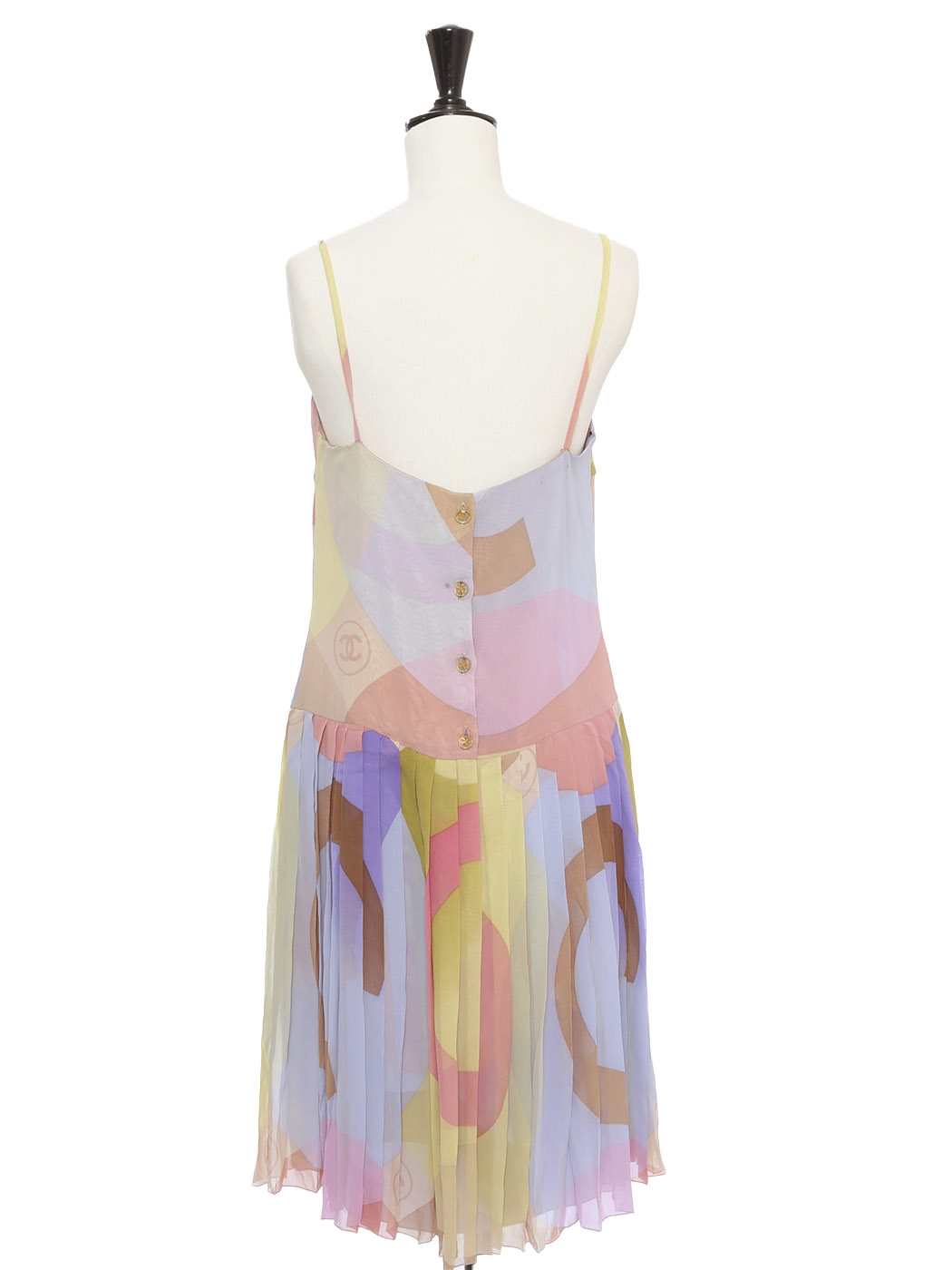 Robe à fines bretelles soie plissée imprimé violet anis et rose Prix boutique 3000€ Taille XS