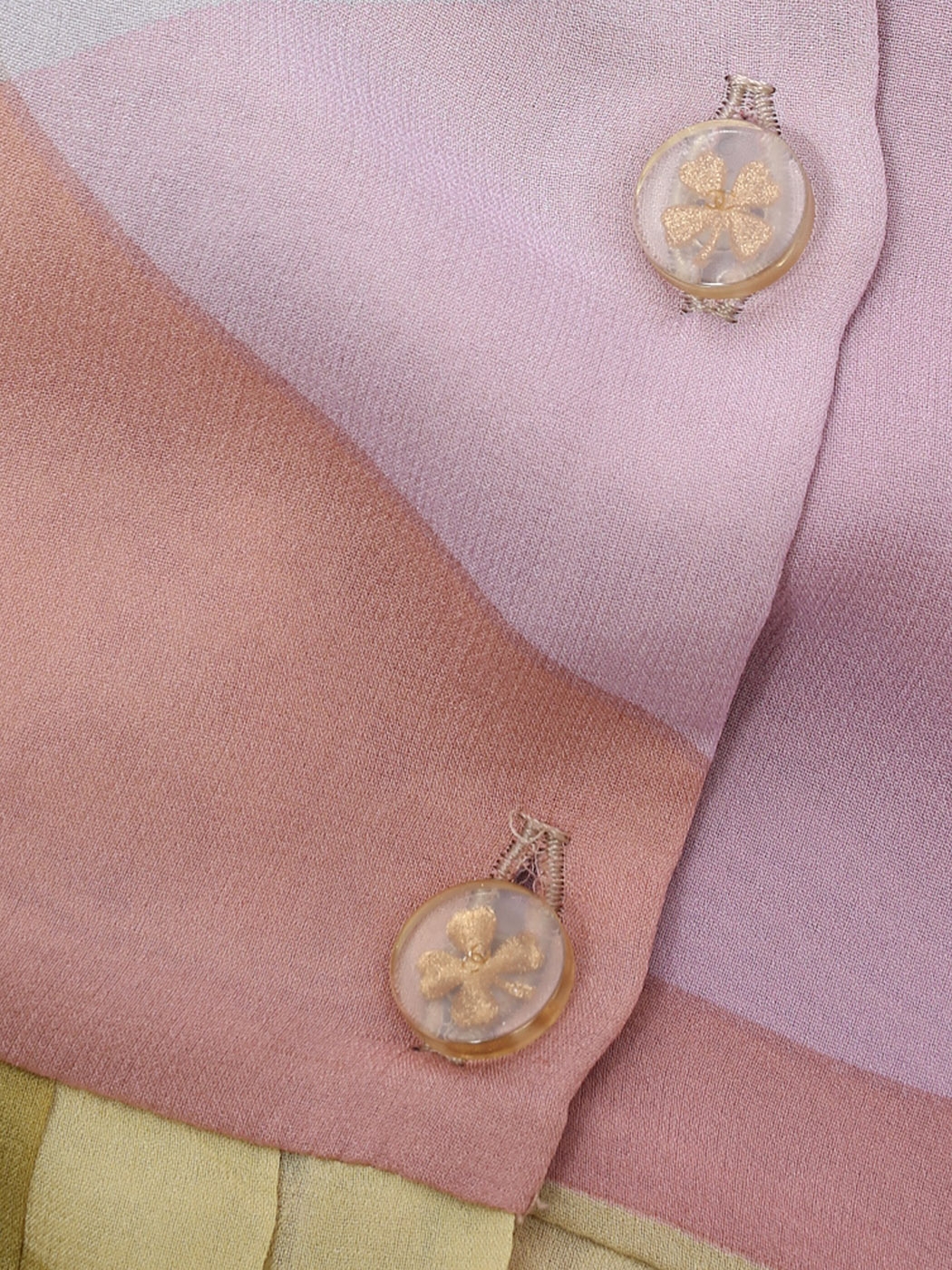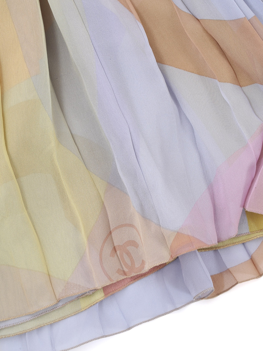 Merveille de la Couture française, cette robe est taillée dans une luxueuse soie rose violet et anis, cette robe dessine une silhouette poétique et élégante. Dessinée sans manches et avec une jupe plissée, c'est une coupe est très flatteuse. Portez cette pièce exceptionnelle avec de hauts talon pour un mariage ou pour un cocktail et aussi au quotidien avec des ballerines.