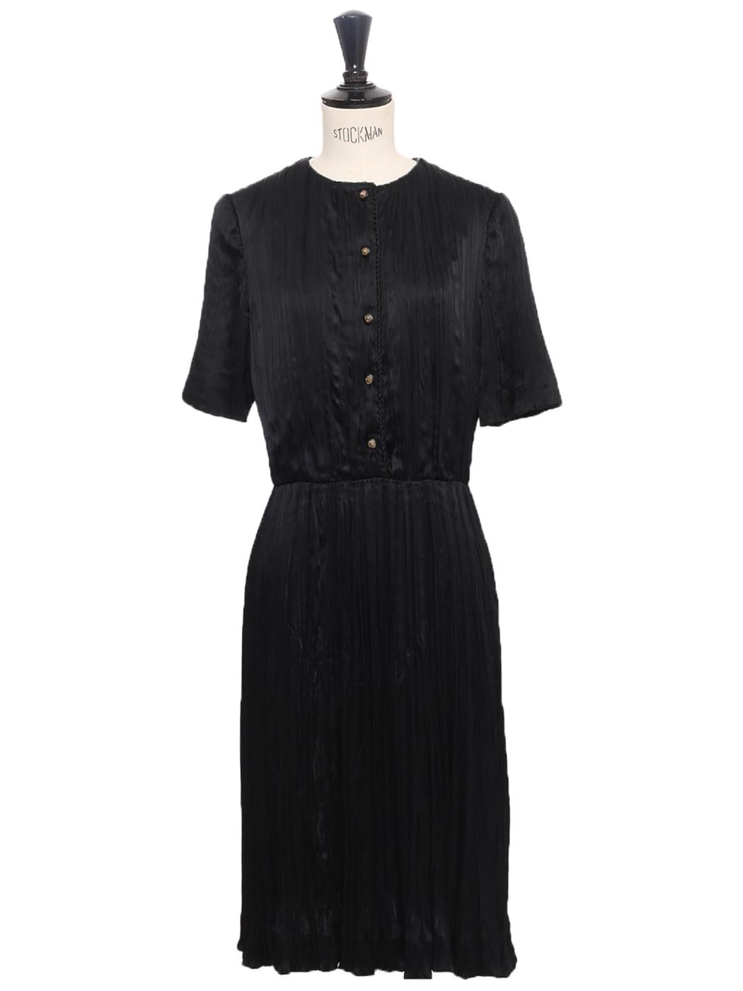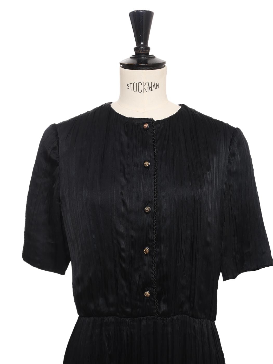 Robe manches courtes en soie noire boutons bijoux dorés Prix boutique 4200€ Taille XS
