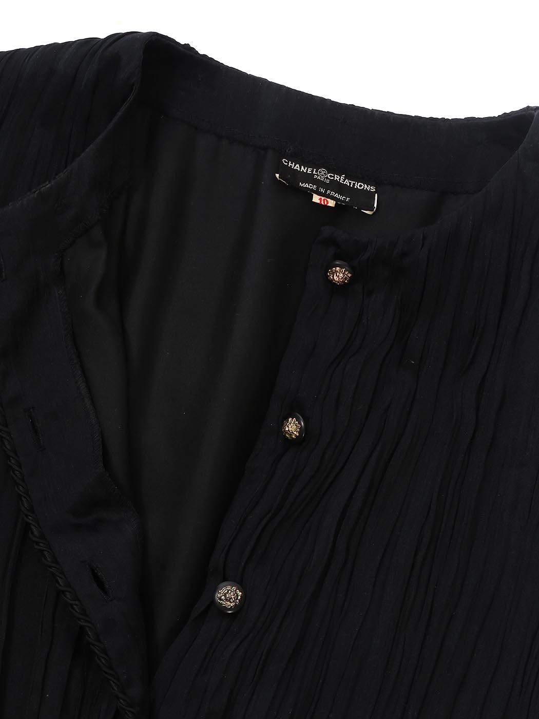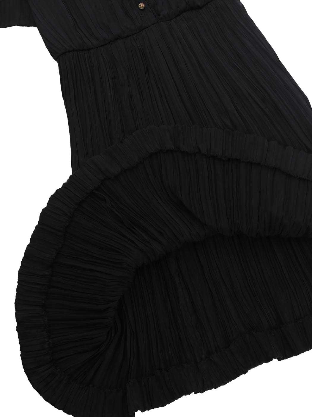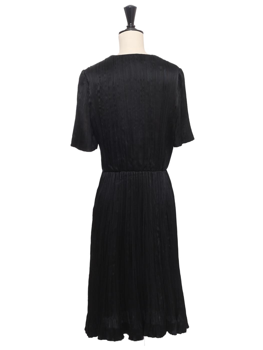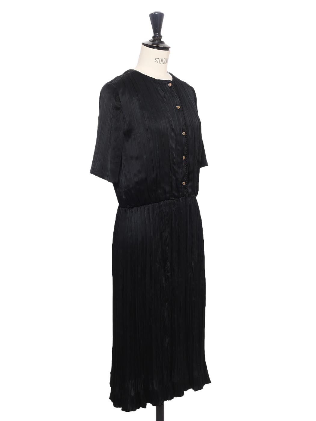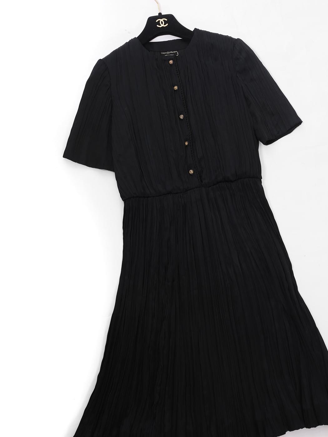 Parfaite petite robe noire, cette merveille a été confectionnée dans une luxueuse soie, finement plissée et ornée de délicats boutons bijoux. Elle allie à la perfection coupe cintrée flatteuse, détails raffinés et romantiques, faisant d'elle une pièce élégante et easy chic pour toutes occasions. Portez-la en journée avec des ballerines et en soirée avec de ravissantes sandales à talon.