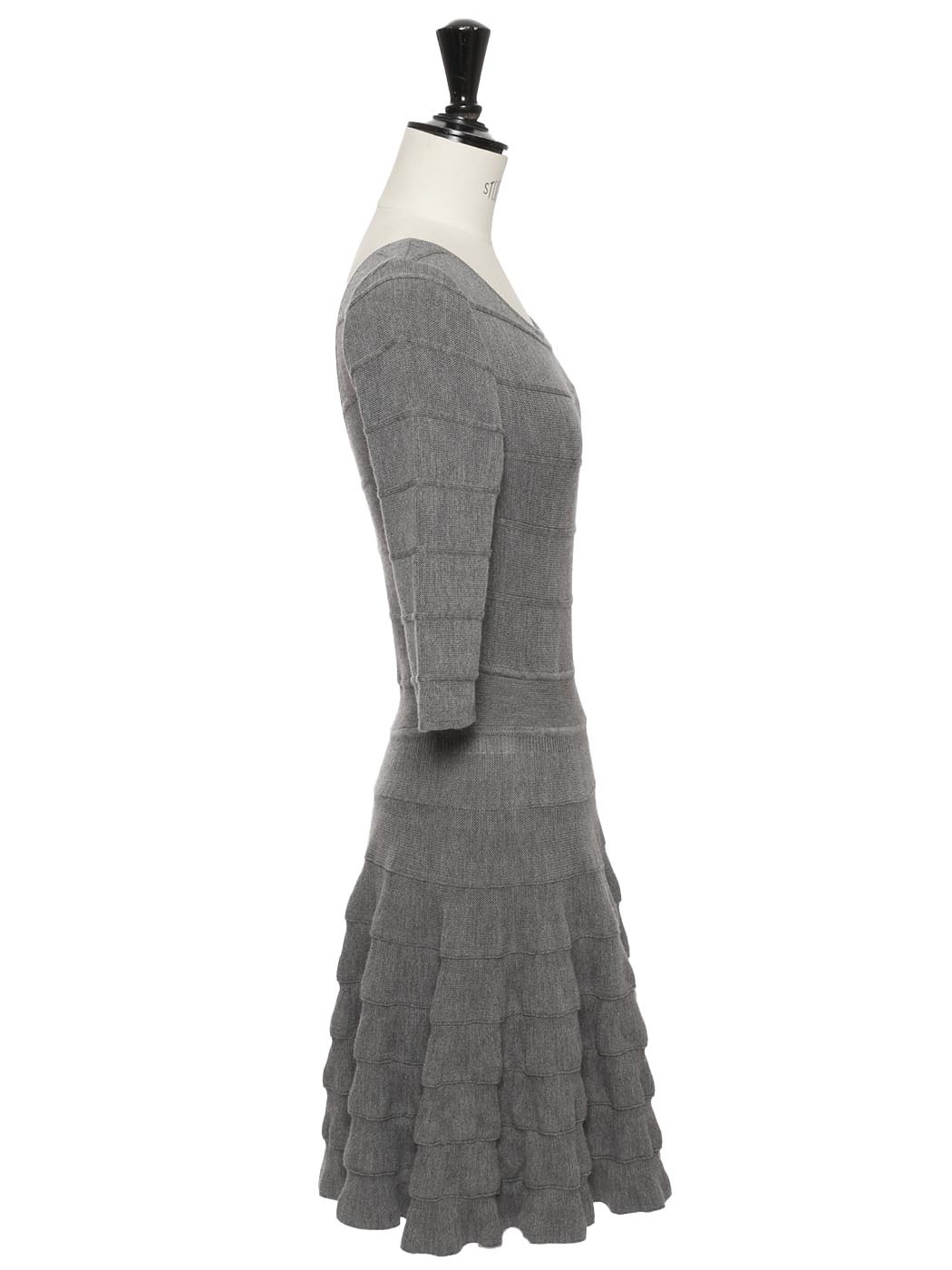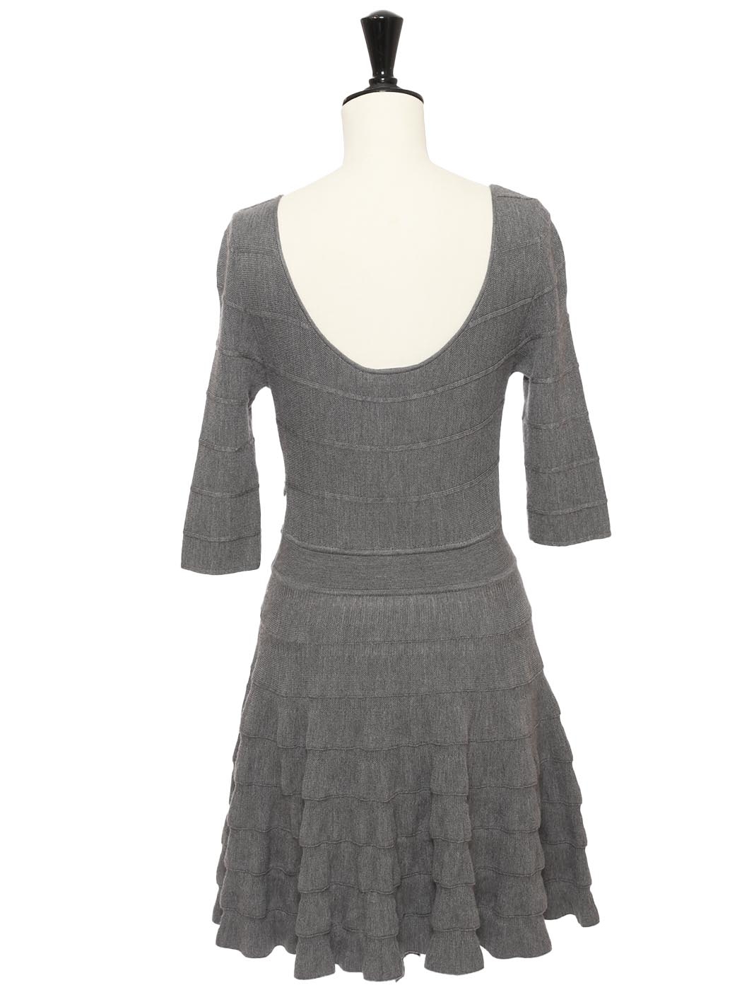 Robe fit and flare manche 3/4 en 100% laine gris clair Prix boutique 4400€ Taille 34/36