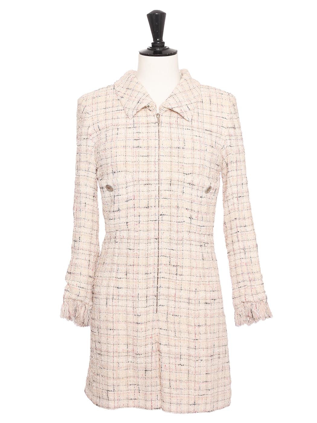 Combi-short en tweed à carreaux rose beige et gris Prix boutique 4500€ Taille XS