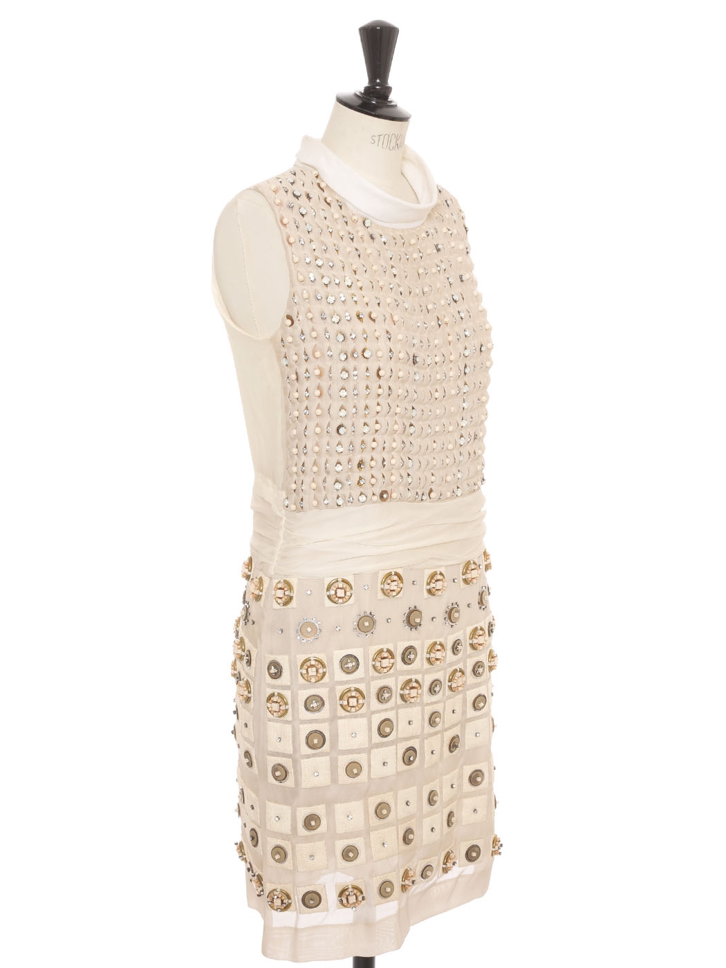 Robe Haute Couture en soie blanc crème brodée de cristaux Swarovski Px boutique 6000€ NEUVE Taille 38