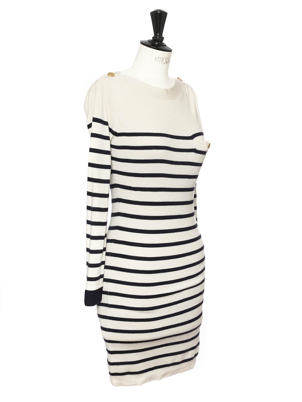 Robe pull marinière en cachemire écru rayé bleu marine Prix boutique 900€ Taille 36