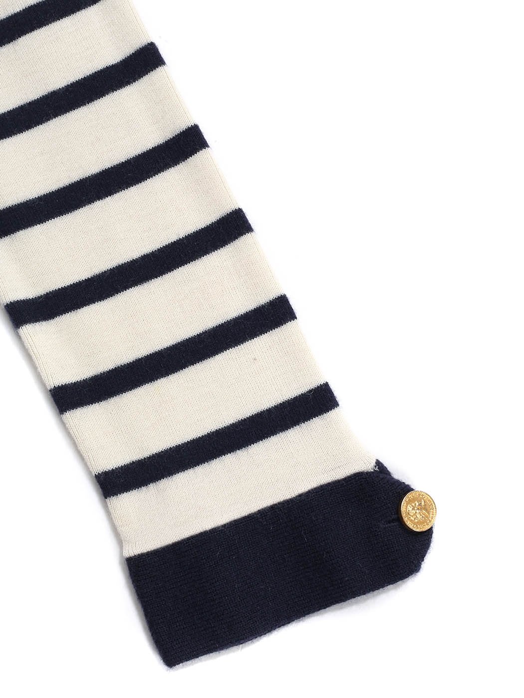 Tricotée dans une maille fine de cachemire divinement douce, cette robe marinière est un petit bonheur à porter. Brodé de délicats boutons dorés aux épaules, elle est élégante et raffinée. Portez-la avec des chaussures plates chic ou des bottines au bureau et le week end avec des baskets.