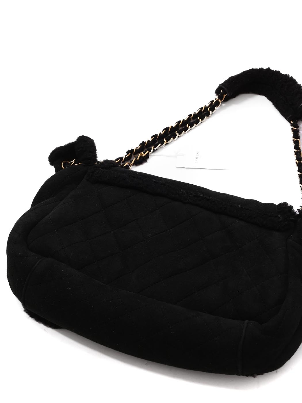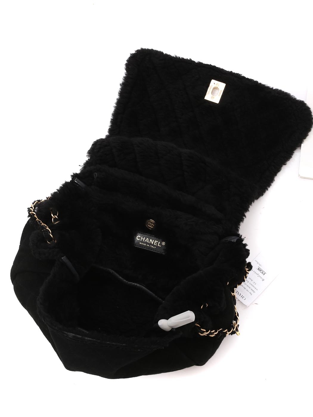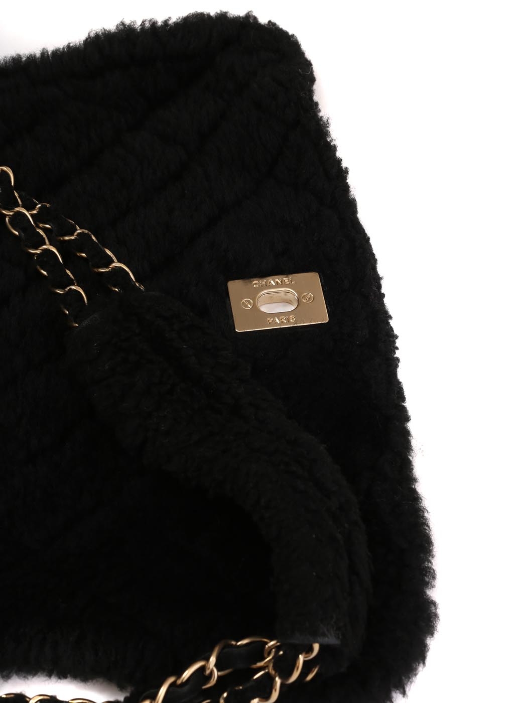 Sac en shearling daim noir peau retournée noir fermoir CC dorée Prix boutique 5850€